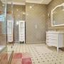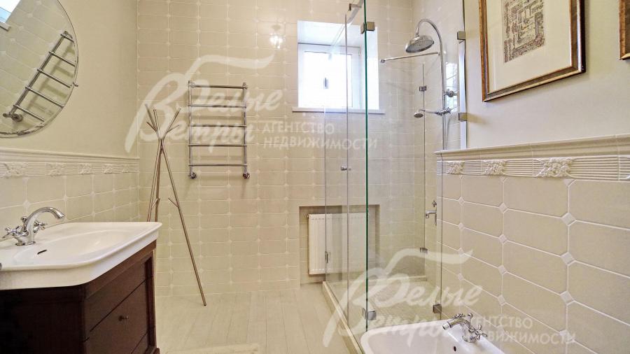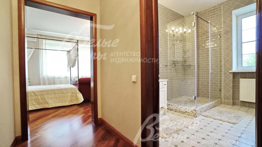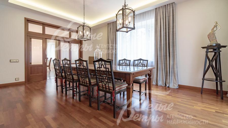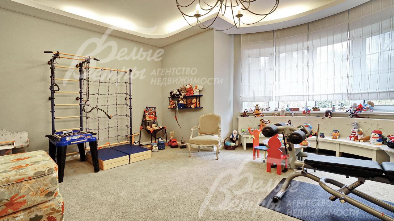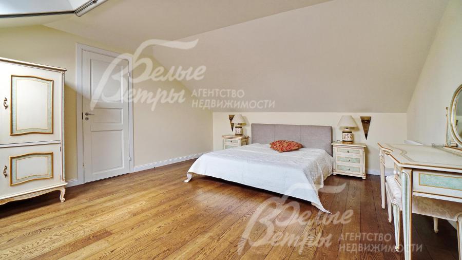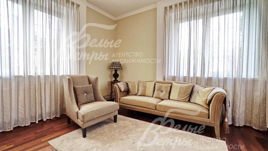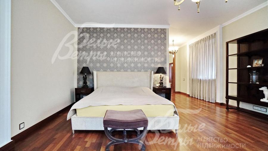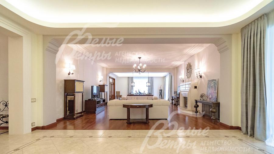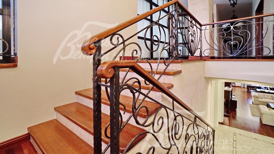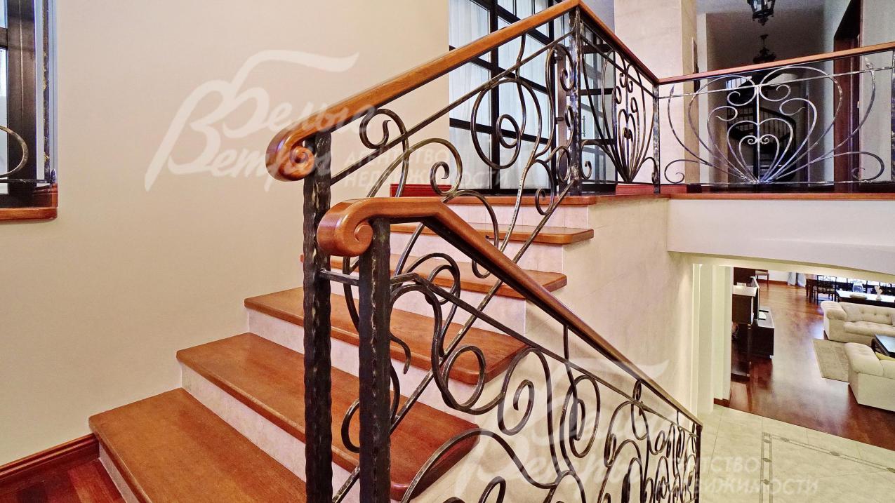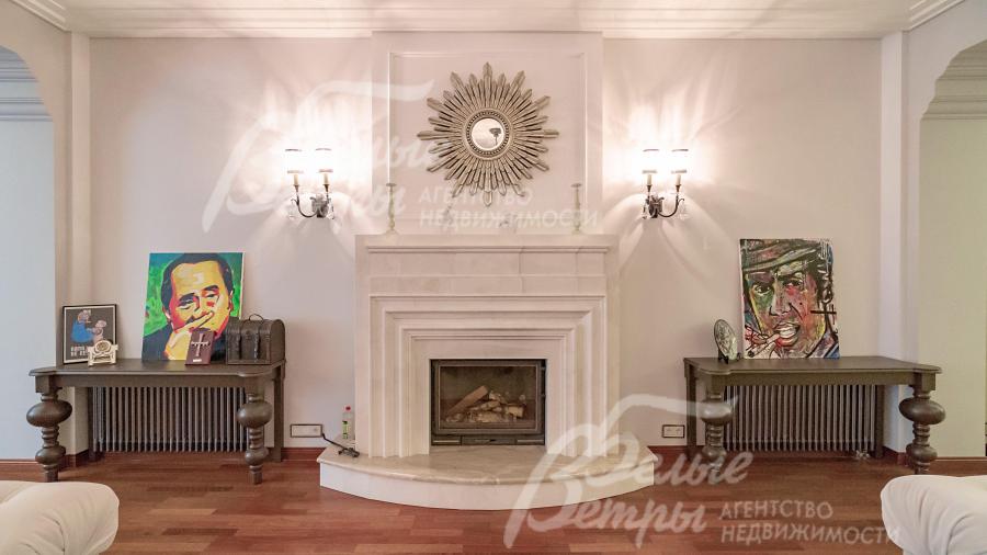 Описание внутренней отделки: классическая отделка с применением дорогостоящих импортных материалов и использованием дизайнерских элементов. Стены окрашены, в некоторых спальнях шелковые обои, а также американские бумажные. Также присутствуют элементы из натурального камня (травертин и мрамор). Элитные итальянские двери с высокими проемами из массива вишни. Лестница ж/б монолитная, ступени и поручни - массив ореха, перила - художественная ковка. В санузлах итальянская плитка. В детской игровой - художественная роспись. Хаммам - мозаика;