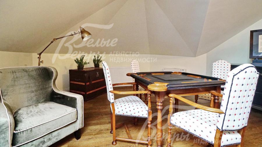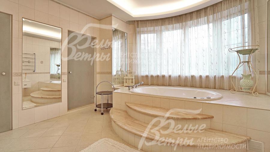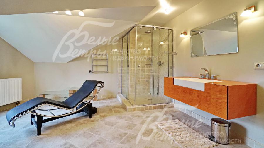 Кирпичный добротный дом, очень дорого и стильно отделан. В отделке использован мрамор, травертин. Элитных марок мебель (массив), сантехника и оборудование. Все помещения светлые и просторные, высокие потолки, высокие дверные проёмы. Две большие гостиные с каминами по 100 кв.м. Две жилые комнаты на 1-ом этаже. Спа-зона с 6-местным джакузи, хамам, сауной и бильярдной. Кинотеатр с профессиональным оборудование. Хозяйский блок состоит из двух спален, еще две спальни - со своими санузлами и гардеробными. Великолепный мансардный этаж, который можно использовать как гостевой или для проведения вечеринок. Просторный участок с ландшафтным дизайном, множеством деревьев, в том числе вековые ели. Дом расположен в обжитом камерном охраняем КП на территории санатория УДП, окруженном лесом. Возможно пользоваться всей инфраструктурой санатория для отдыха и здоровья.