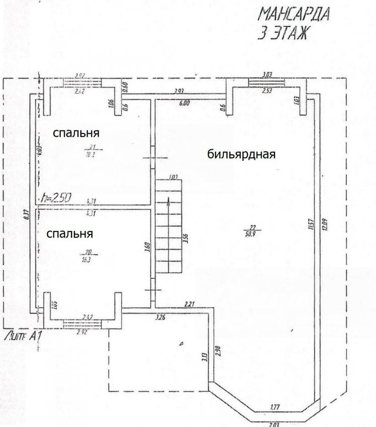3-ий этаж: две спальни 20 кв.м и 17 кв.м, бильярдная 50 кв.м, с/узел 10 кв.м