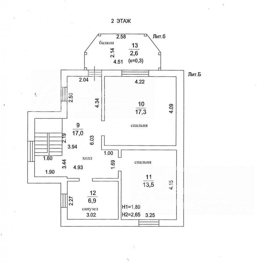 2-ой этаж: Холл 17 кв.м, спальня 17 кв.м, спальня 13.5 кв.м, с/узел 7 кв.м, балкон