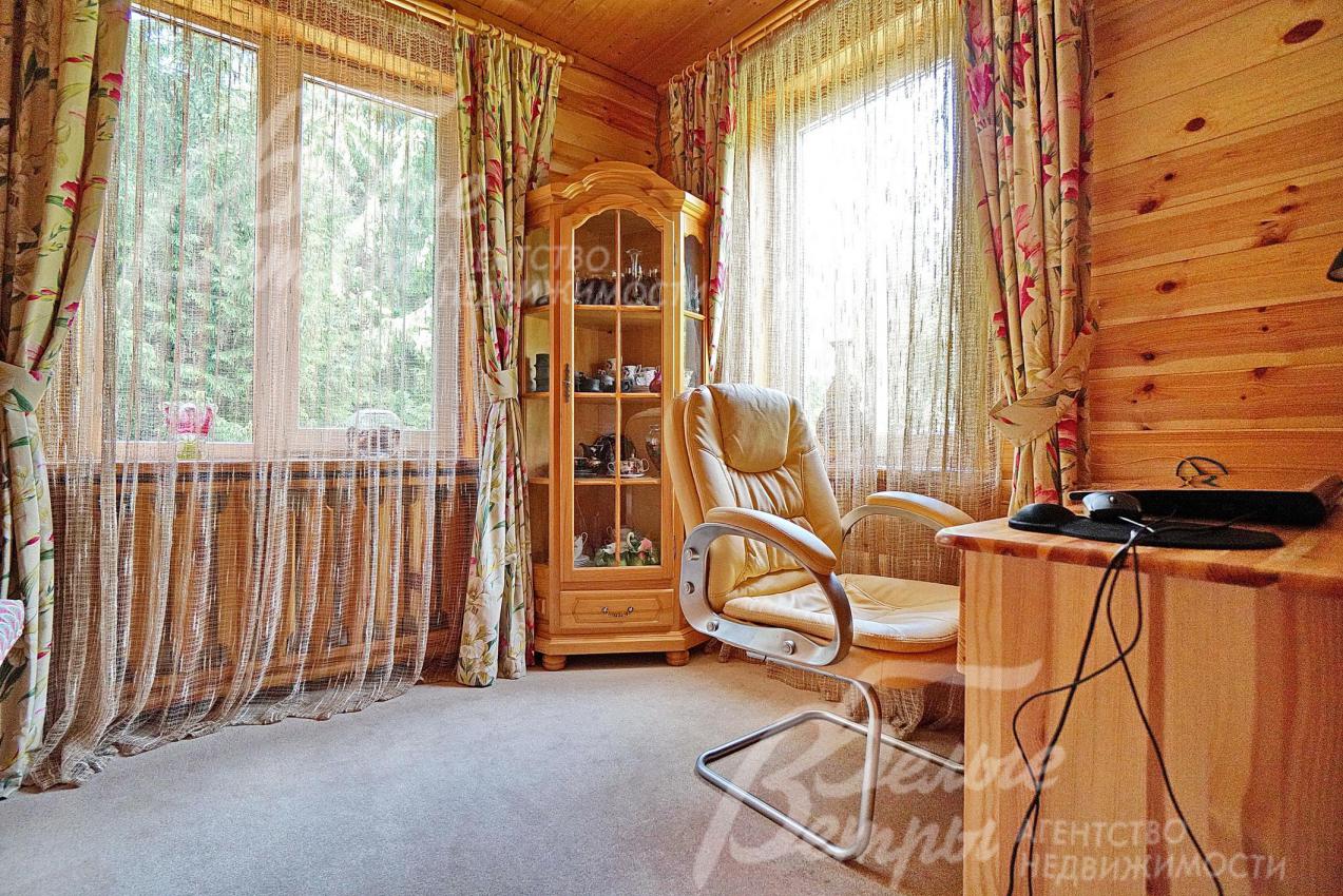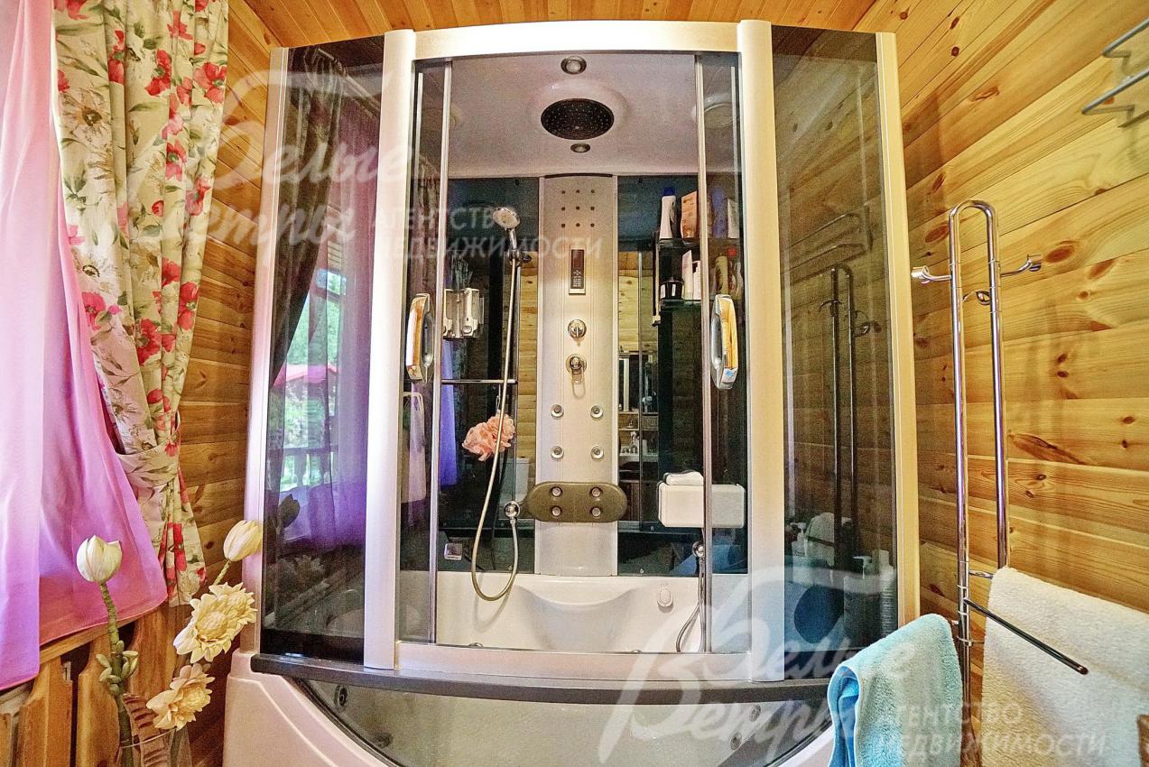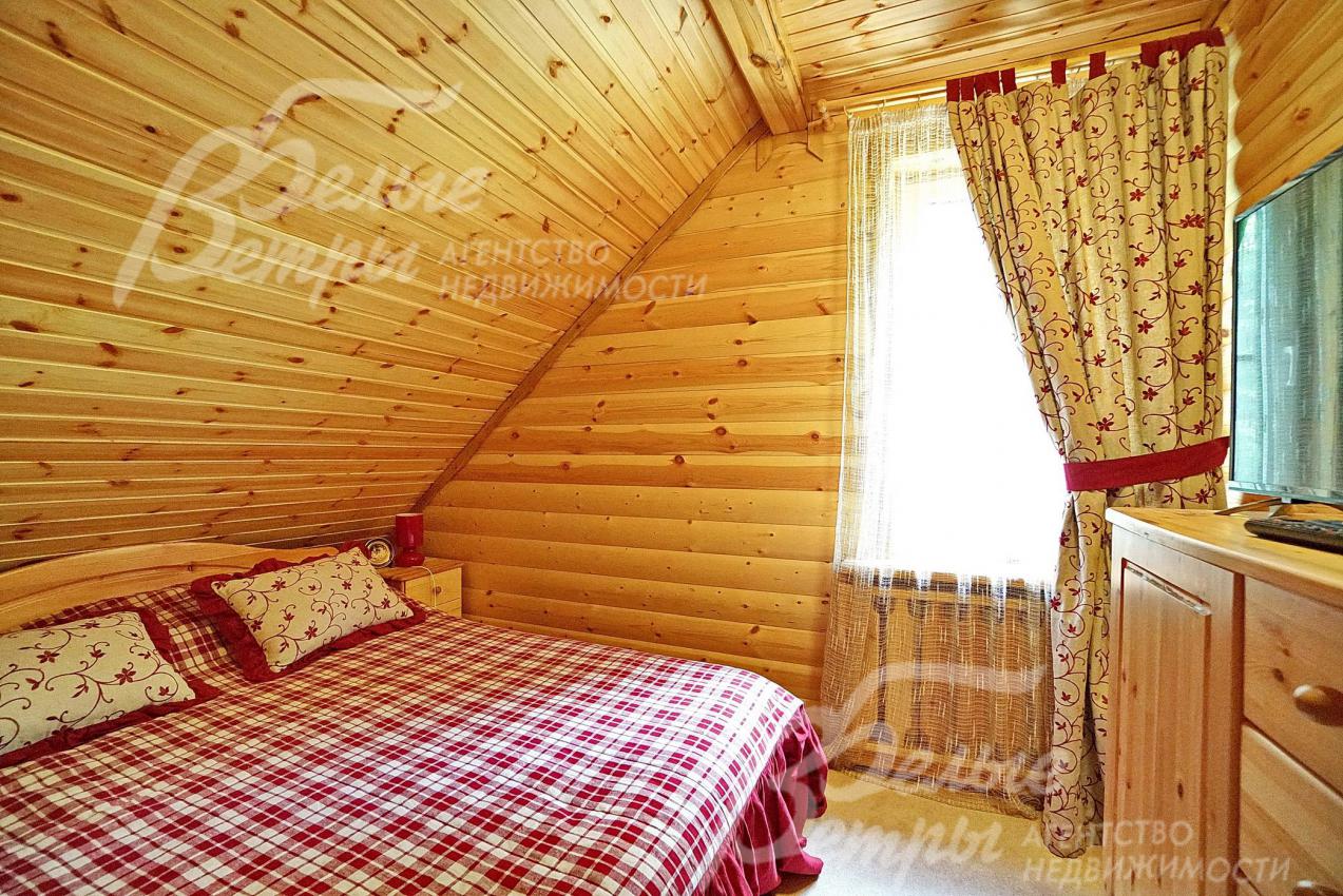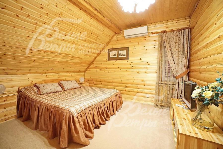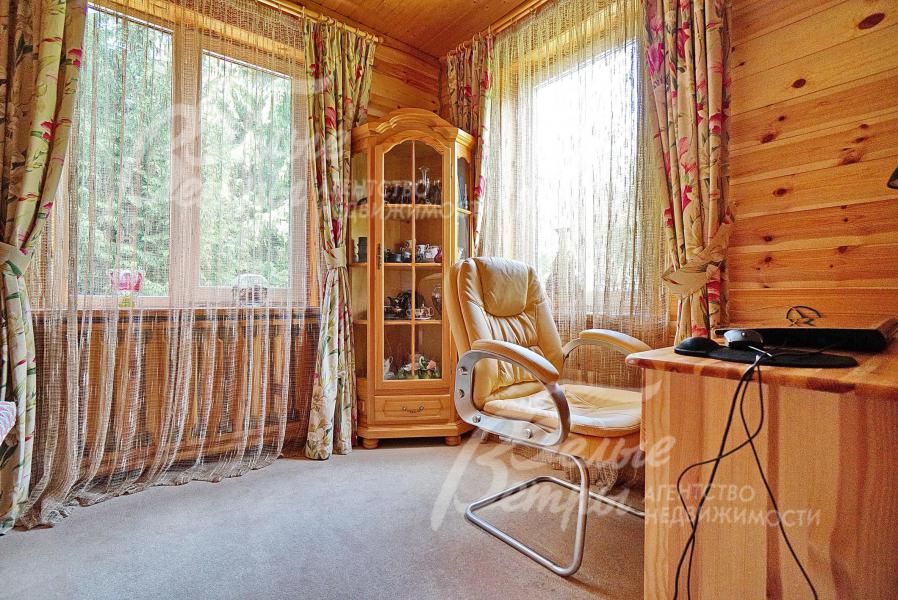Описание внутренней отделки: Отделка в стиле деревянного дома, при этом современная, аккуратная с использованием материалов высокого класса. Во внутренней отделке использован блок-хаус, покрытый лаком. Полы в прихожей, кухонной зоне и с/у выложены плиткой с водяным подогревом. В остальных комнатах 1го этажа - инженерная шпонированная доска "Дуб". Полы 2го этажа покрыты ковролином. Деревянная лестница "Лиственница". Потолки отделаны вагонкой (хвоя). Вся сантехника фирмы Laufen (Швейцария). Ванная-душевая с гидромассажем и радио. Коммуникации разведены, радиаторы стальные Kermi, э/э Legrand. Двери дерево массив (хвоя). Подоконники деревянные (лиственница)