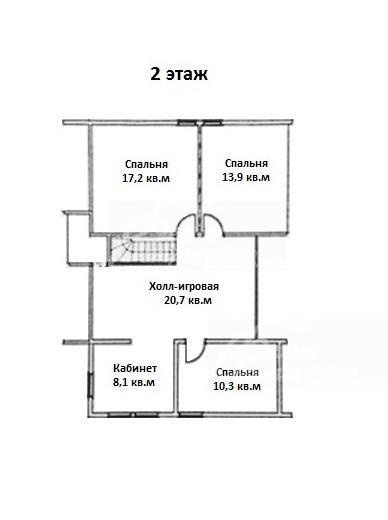 2-ой этаж: Холл-игровая 21 кв.м, спальня 17 кв.м, спальня 14 кв.м, спальня 10 кв.м, кабинет 8 кв.м.
