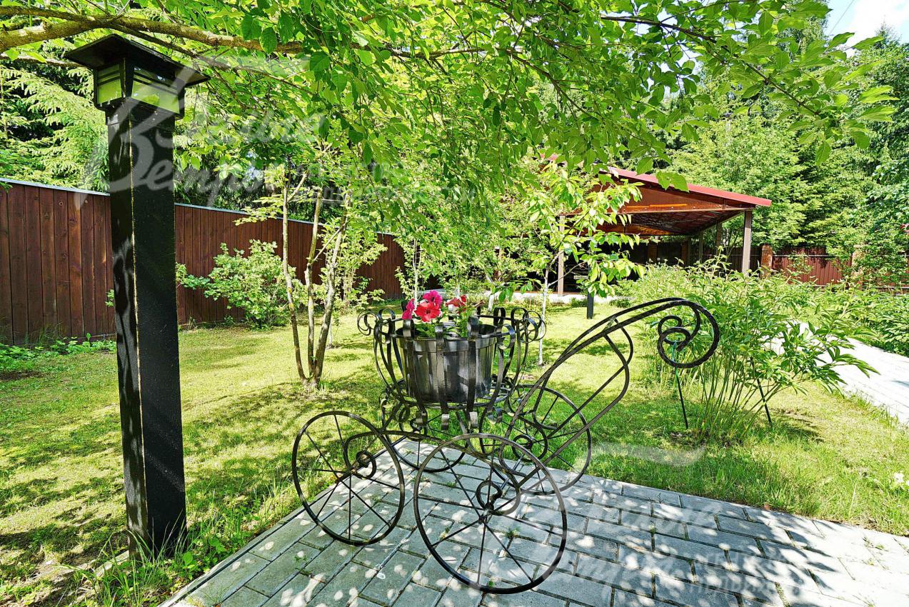 Благоустройство участка: На участке растут около 50 взрослых елей, 3 липы, плодовые: яблони - 7 шт., вишни - 3 шт., сливы - 3 шт. А так же большое количество декоративных и ягодных кустов. Везде высажен газон, устроены клумбы и дорожки с патио. Сделано уличное освещение.