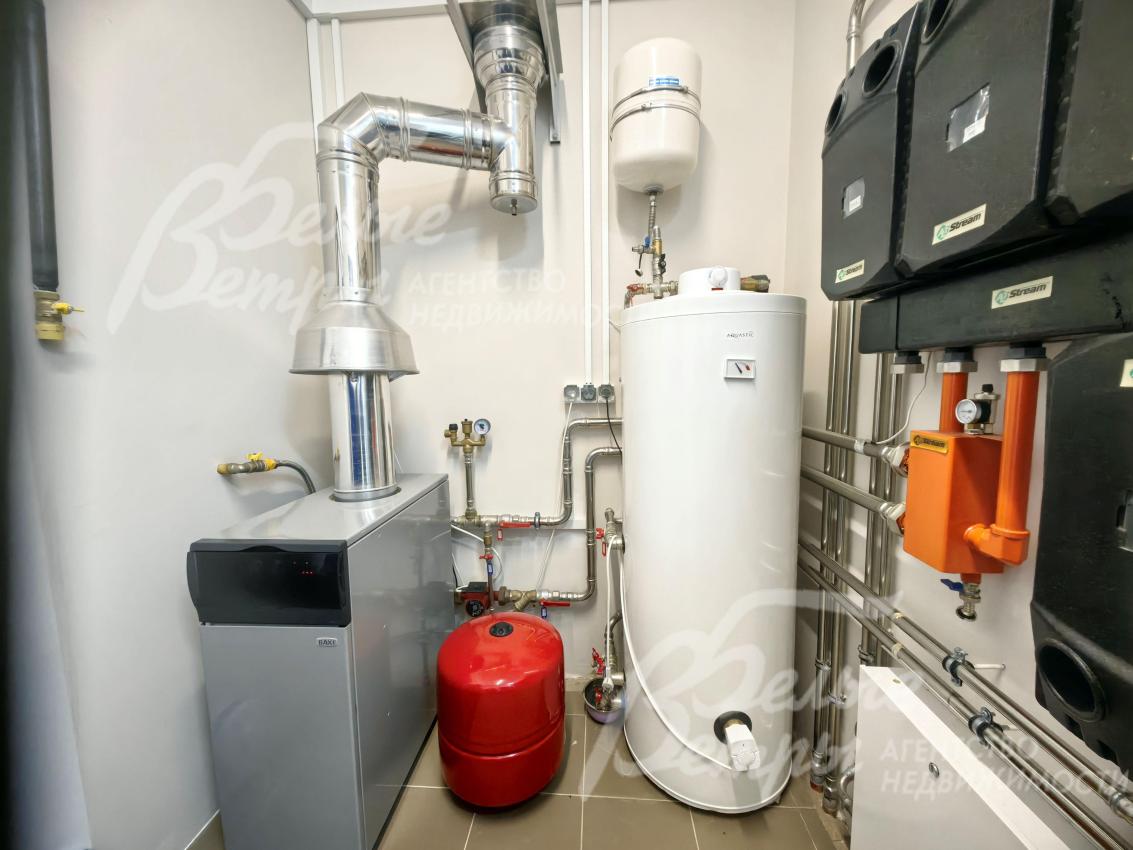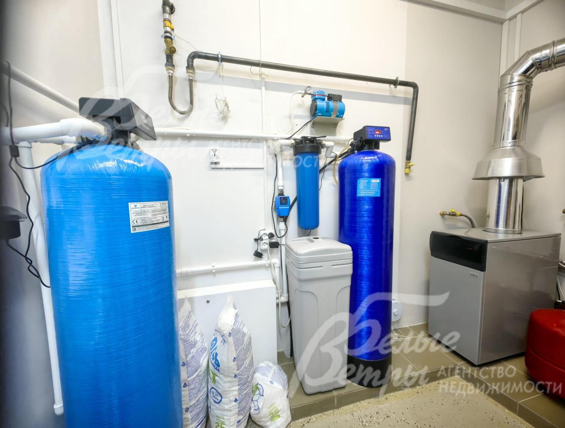 Инженерное обеспечение: газовый котел BAXI, бойлер AQUASTIC на 180 л, многоступенчатая система очистки воды. Вентиляция естественная, сплит системы во всех помещениях. ТВ от проводного интернета (оптика). Оборудована пожарная сигнализация, датчики движения в доме и камеры по периметру участка.