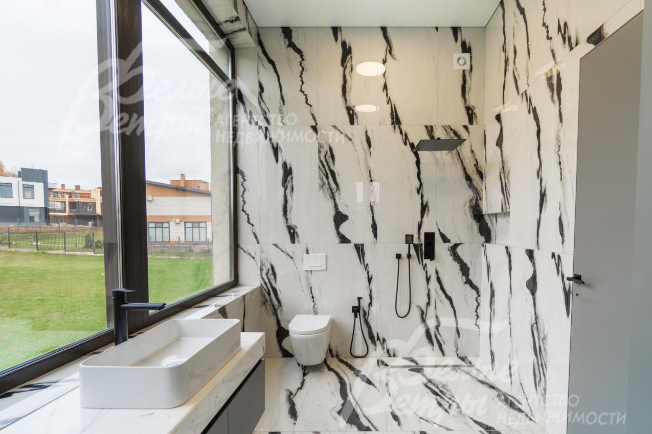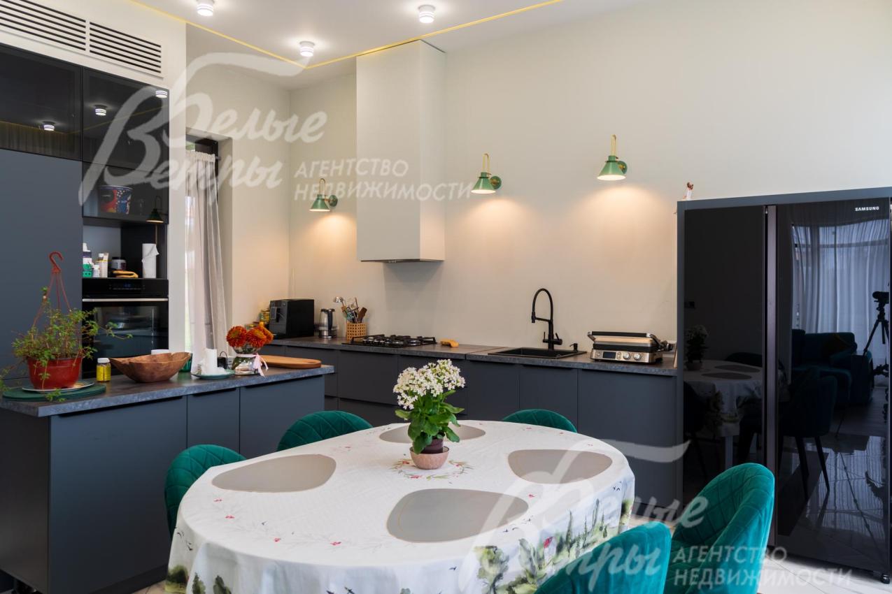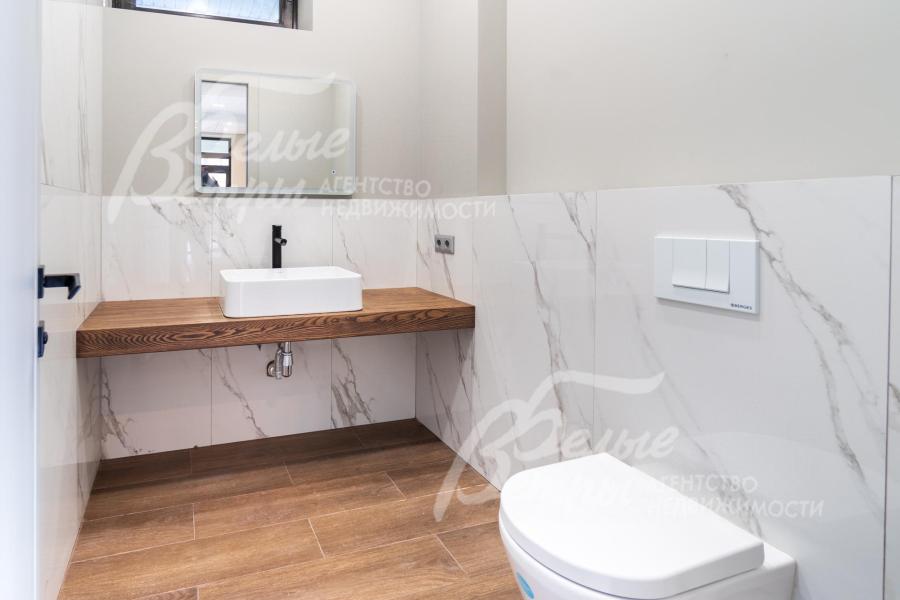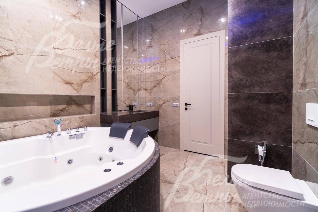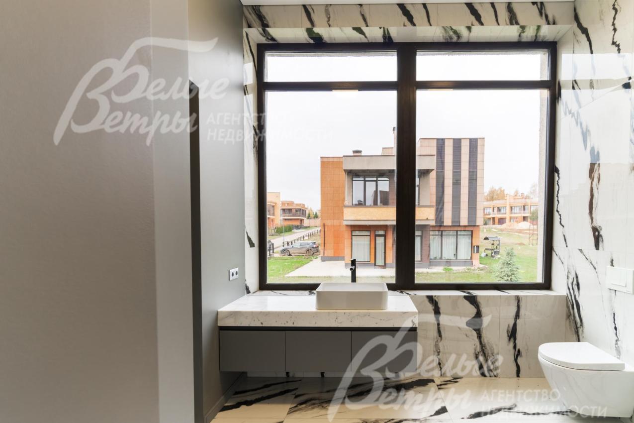 Описание внутренней отделки: Дизайнерская отделка в стиле Современный Модерн. На стенах декоративная штукатурка, окраска, в санузлах - плитка Laparet. В отделке использованы дизайнерские элементы из дерева, 3D элементы, различные ниши со скрытой подсветкой, зеркала и т.д. На полу керамогранит с водяным подогревом (все санузлы, прихожая, холл, зона кухни и зона гостиной); паркетная дубовая доска - все спальни и холл второго этажа. Потолки подвесные ГКЛ разноуровневые и натяжные (французские) с дизайнерскими элементами и различной подсветкой (скрытая светодиодная, точечные споты, движущиеся споты на рейлингах, люстры). Вся сантехника от ведущих брендов. Душевые со встроенной системой слива в пол и со стеклянными дверцами. Все коммуникации разведены, конвекторы встроенные польные, электрика АВВ (Германия). Двери деревянные эмалированные и двери скрытого монтажа высотой 2.3 м, подоконники из массива ореха.