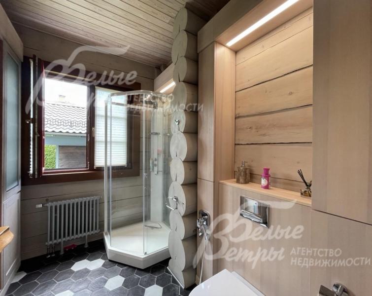 Дом выстроен из неоцилиндрованного бревна по индивидуальному проекту