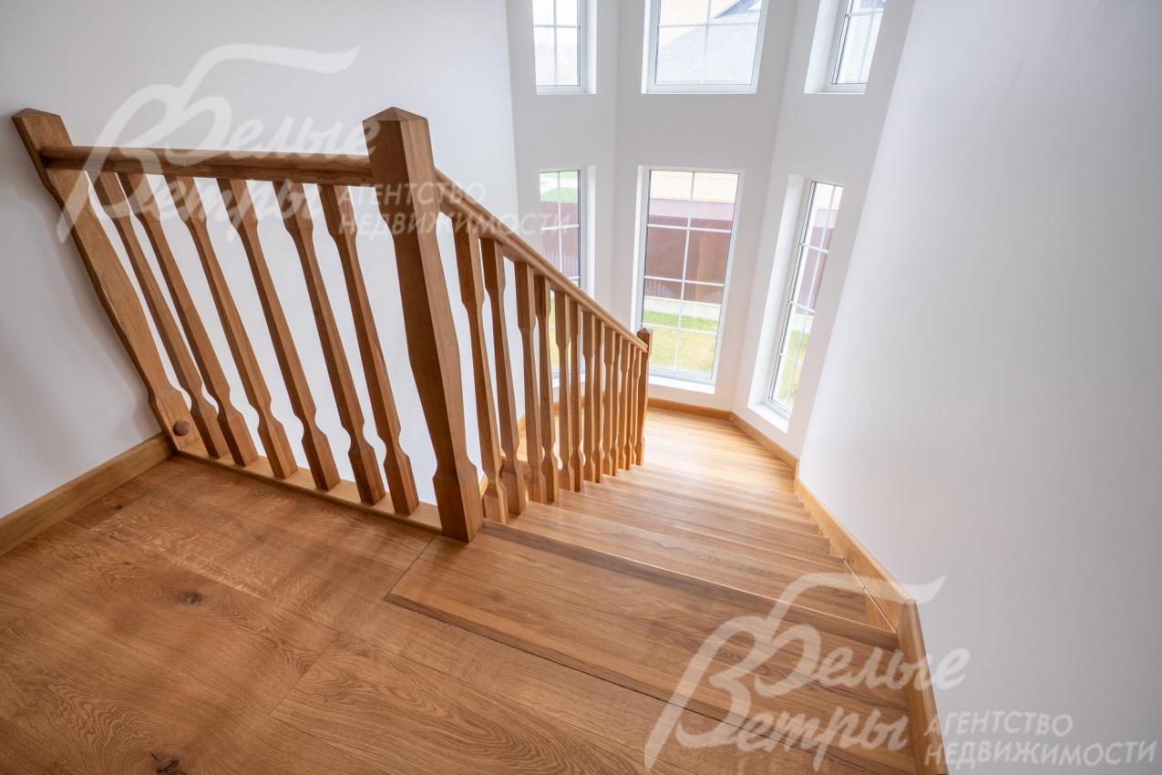 Лестница монолитная с деревянными ступенями.