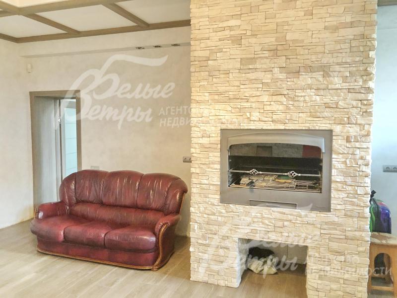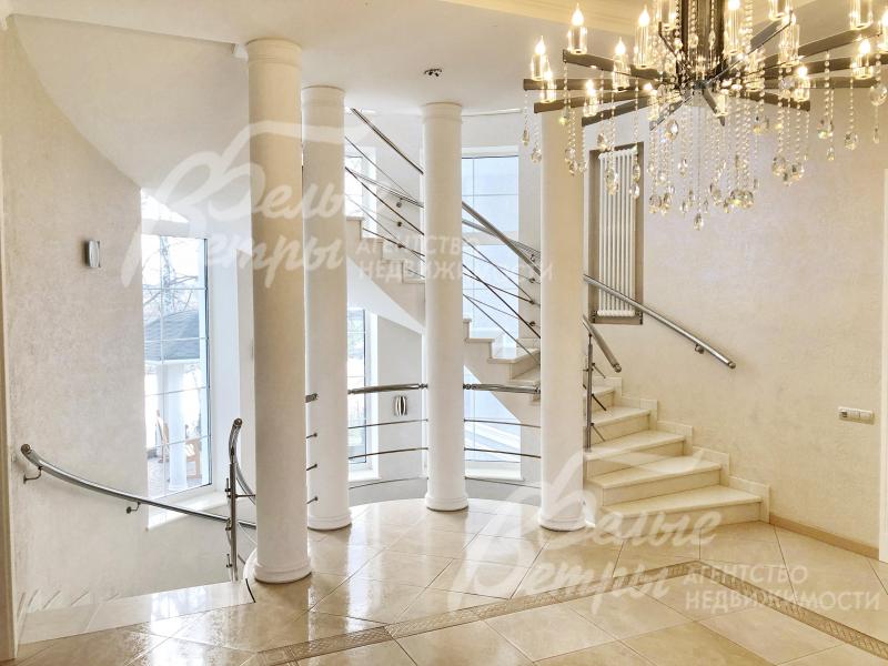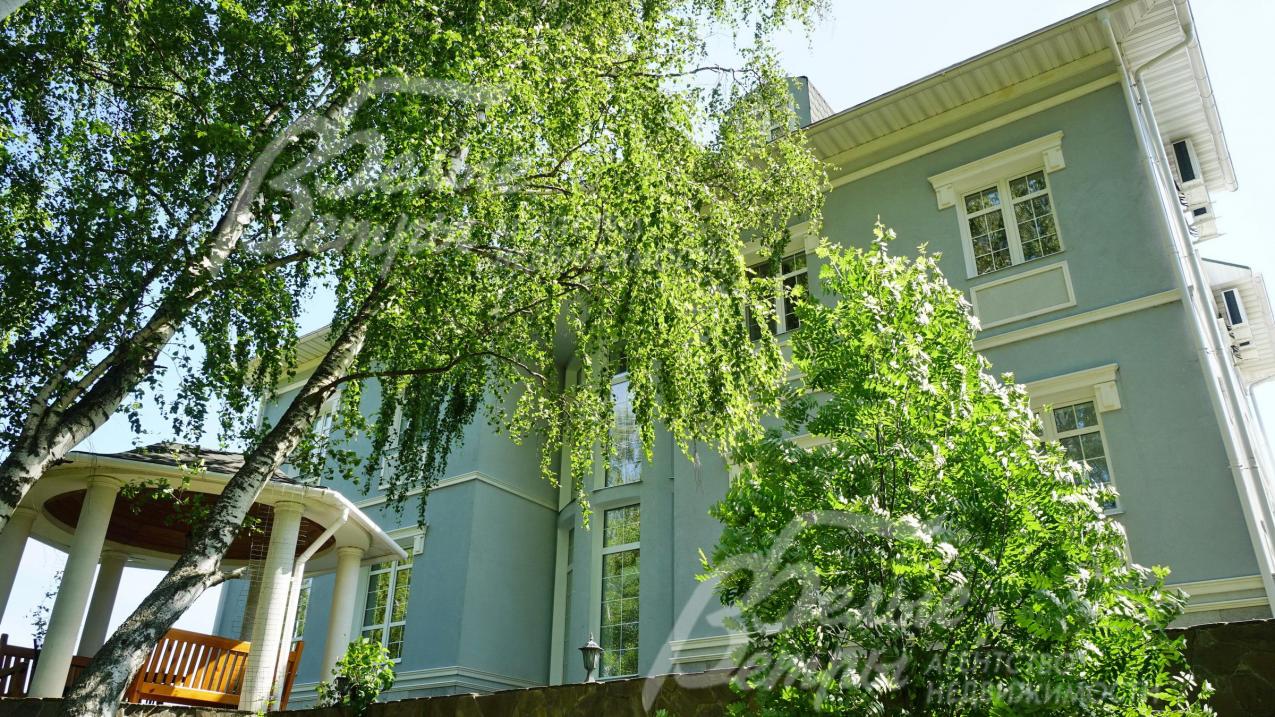 Описание внутренней отделки: в доме выполнена качественная современная отделка в стиле минимализма из дорогих натуральных материалов: сочетание камня, стекла и дерева. Широкая лестница со ступенями и подступенками из мрамора, перила и поручни металлические хромированные. В холле 1 и 2 этажей стоят большие колонны. На полах холлов и общих помещений дорогая мраморная плитка. Санузлы отделаны плиткой. В спальнях и на мансардном этаже на полу паркетная доска.