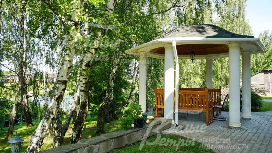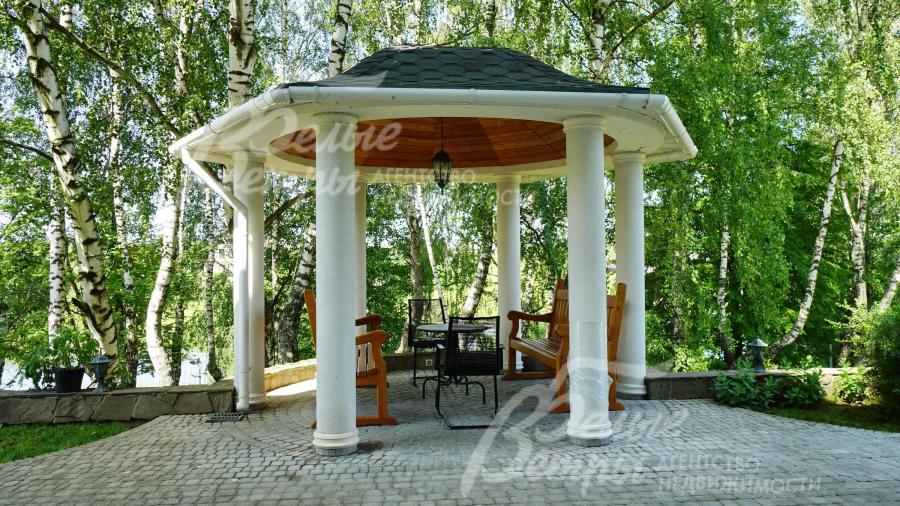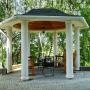- беседка (ротонда) с шестью колоннами, со столом и двумя скамейками во дворе дома со стороны реки.