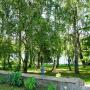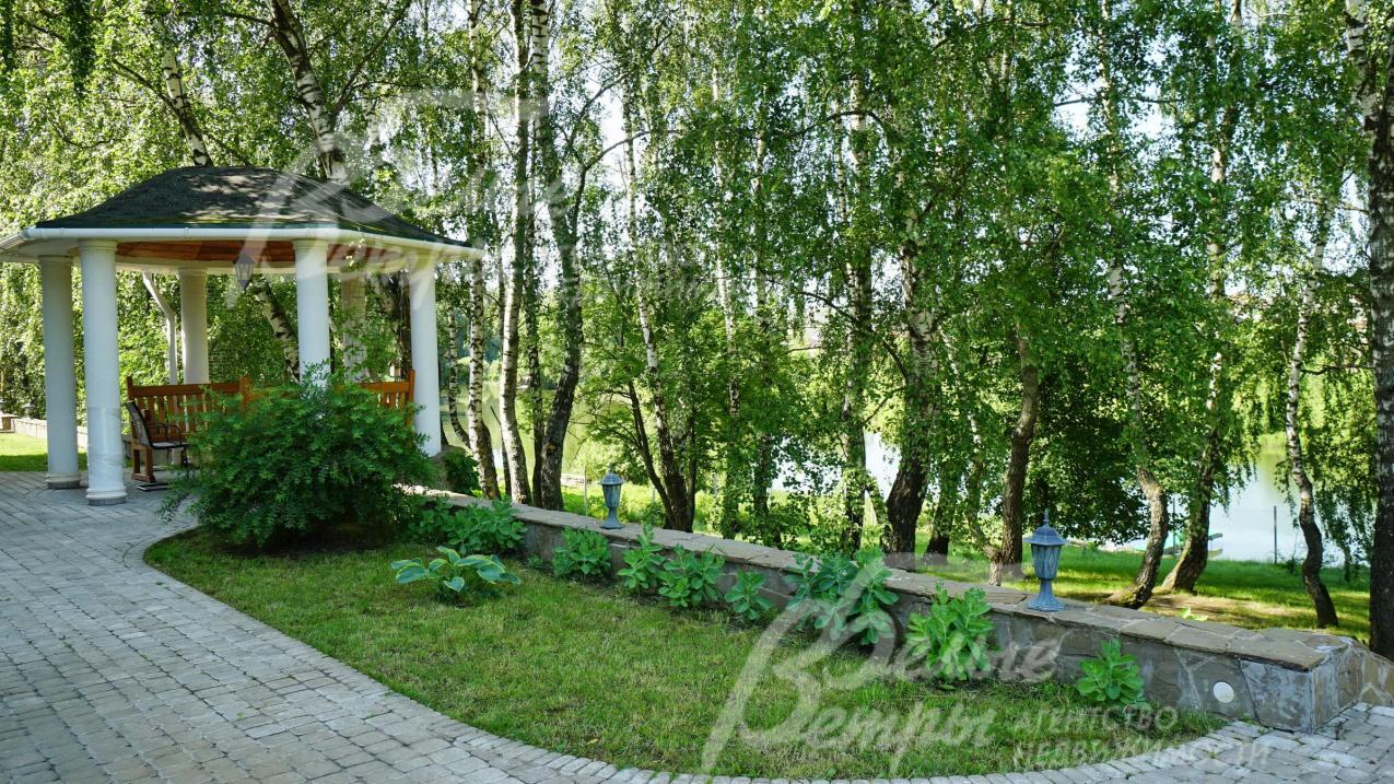 Благоустройство участка: многоуровневый участок с уклоном к реке и естественным ландшафтом. На участке березовая роща с вековыми деревьями. Со стороны дороги искусственные посадки кустов и деревьев. Вокруг дома участок вымощен брусчаткой. Парковка на 4 машины у гаража. От площадки у дома со двора есть два спуска к склону у реки - с одной стороны со ступеньками с другой без ступенек (чтобы скатывать косилку и др).