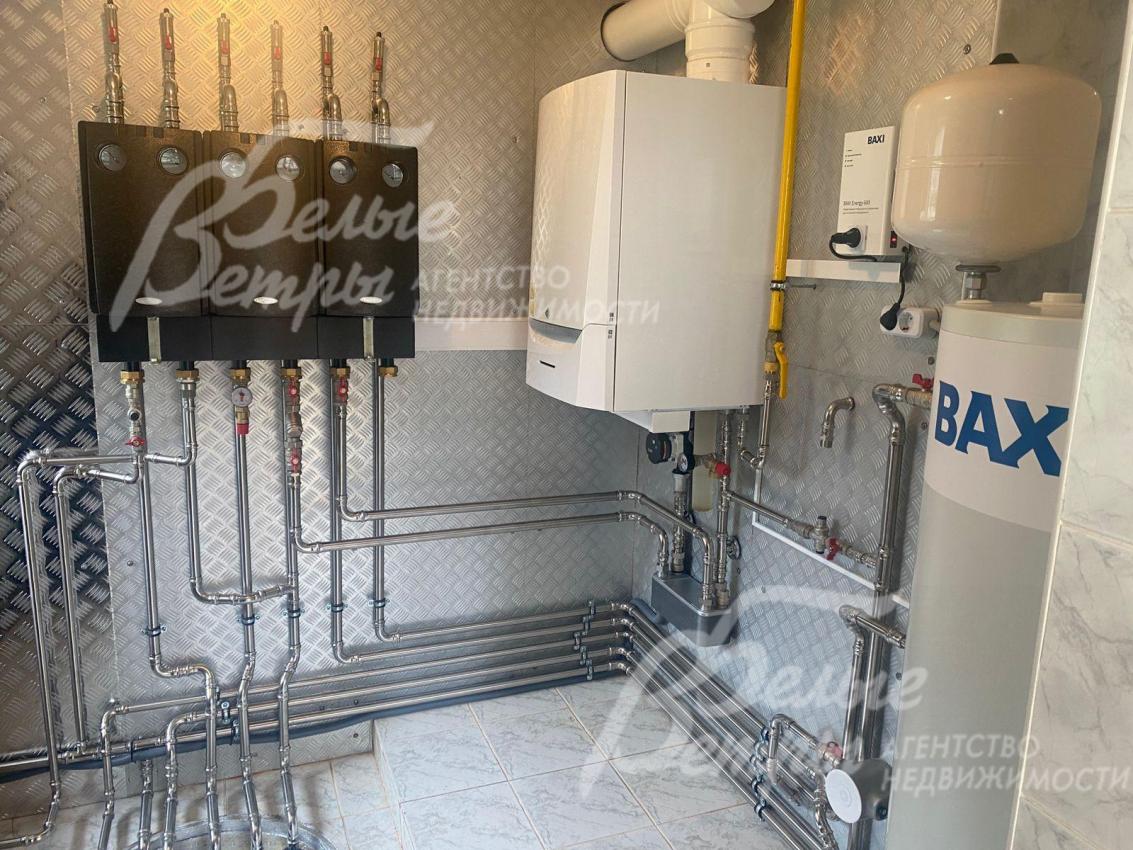 Инженерное обеспечение: абсолютно новое оборудование в котельной - газовый котёл DeDietrich (Франция), бойлер Baxi (Италия), комплексная система очистки воды в котельной, а также фильтр Atoll с обратным осмосом на питьевую воду на кухне. В бане водонагреватель Electrolux. Кондиционеры установлены в гостиной, кухне и спальнях. Сигнализация Гольфстрим (датчики движения/звука). Теплый пол в помещениях с плиткой на полу (в т.ч. в санузлах). Мощный дизельный резервный генератор на 12 кВт.