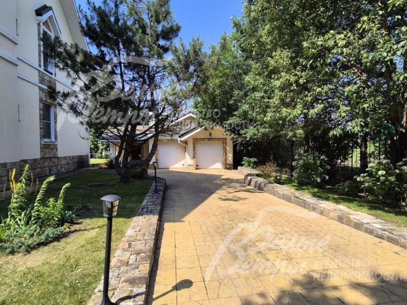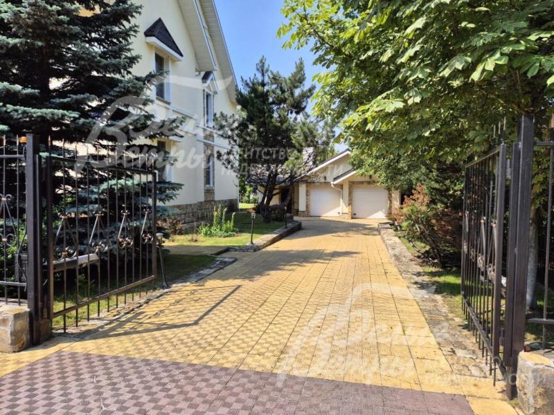 Мебель, оборудование: установлен кухонный гарнитур из массива вишни производства Италии, со встроенной техникой: шестиконфорочная газовая панель и духовой шкаф Miele, посудомоечная машина Miele, двухкамерный холодильник Ariston и мини-холодильник Liebherr, измельчитель бытовых отходов, вытяжка, а также микроволновая печь Bosch и эл. чайник. Столовая группа на 8 персон. На мансарде мини-кухня с водопроводом, двухконфорочной электроплитой, мини-холодильником и микроволновой печью. В доме также есть стиральная машина Miele (Германия) до 7 кг, стиральная машина AEG (Германия) на 5 кг с вертикальной загрузкой, телевизоры Samsung, Philips, Panasonic. Дом полностью меблирован качественной дорогой мебелью премиальных брендов - DALL'AGNESE (Италия), Ambitat (Португалия), а также французских брендов. Мебель из натуральных материалов - массив, кожа. В гостиной обеденный стол для приемов на 12 персон. Сантехника премиальных европейских брендов Jacob Delafon, Hatria, ванна-джакузи и душевая кабина JACUZZI. На мансарде русский бильярд 10 футов. В бане настольный теннис. Багетные карнизы в цвет мебели, на окнах качественные шторы с ламбрекеном и подхватами и тюль. Потолочные люстры и настенные бра производства Италия/Испания. Авторские витражи на лестничном марше. Стены украшают картины, в холле второго этажа гобеленовое панно.
