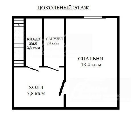 Цоколь: общая площадь 30.9 кв.м: холл 7.8 кв.м, кладовая 2.3 кв.м, санузел с душевой кабиной 2.4 кв.м, спальня 18.4 кв.м