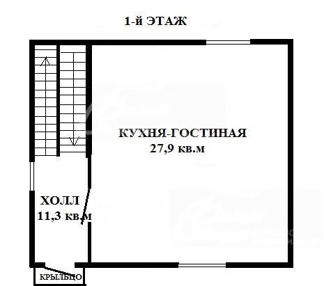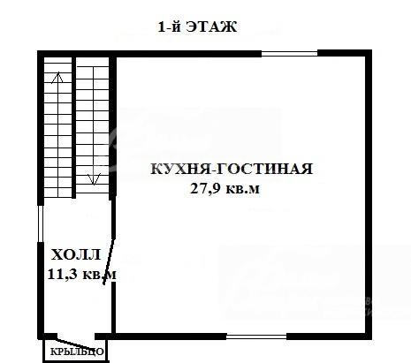 1-ый этаж: общая площадь 39.2 кв.м: коридор 11.3 кв.м, кухня-гостиная 27.9 кв.м