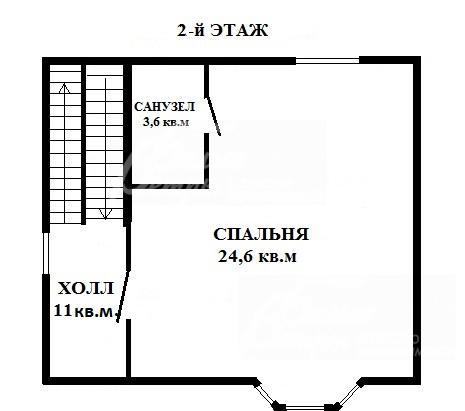 2-ой этаж: общая площадь 39.2 кв.м: холл 11 кв.м, санузел с душевой кабиной 3.6 кв.м, спальня 24.6 кв.м