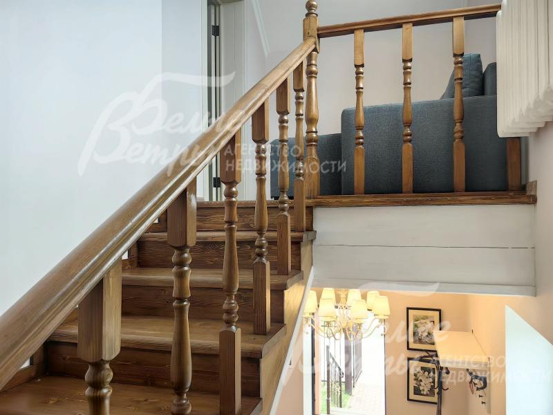 Описание внутренней отделки: отделка в современном стиле минимализма: стены окрашены и оклеены обоями, в санузлах плитка; на полах ламинат, в гостиной и в спальне на цокольном этаже - плитка. Лестница шириной 90 см из массива сосны с деревянными перилами.