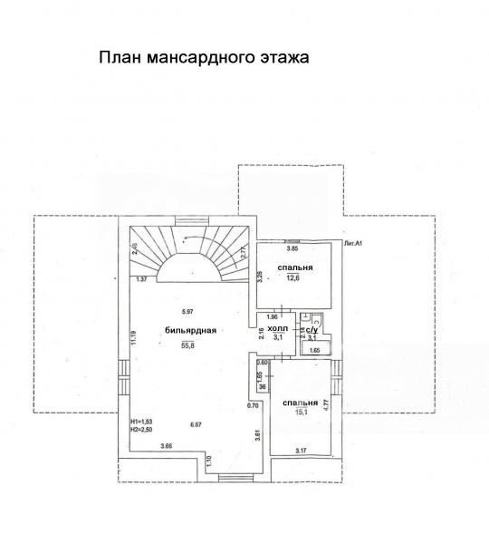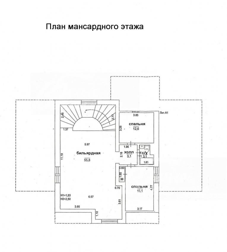 3-ий этаж: бильярдная 55.8 кв.м с профессиональным оборудованием (русский бильярд № 12), коридор 3.1 кв.м, с/у 3.1 кв.м, спальня 15.1 кв.м со встроенным шкафом, спальня 12.6 кв.м