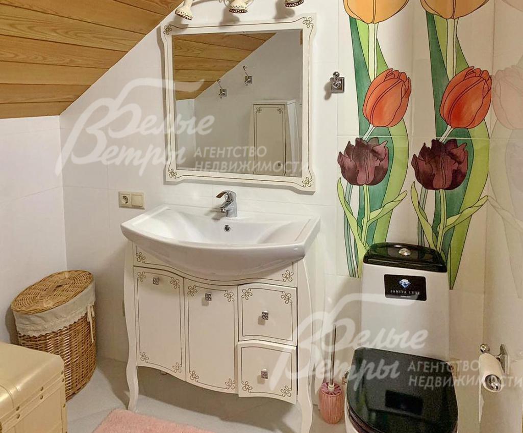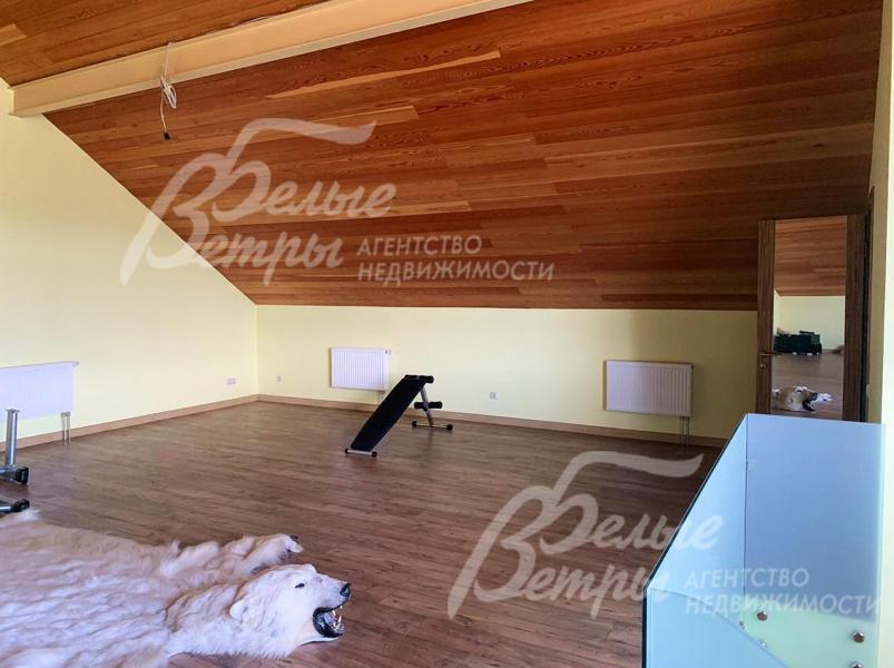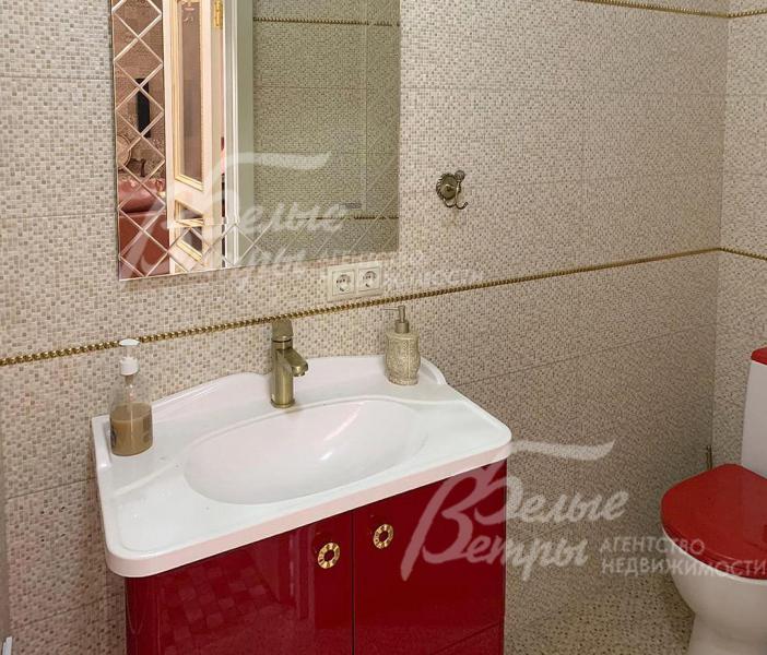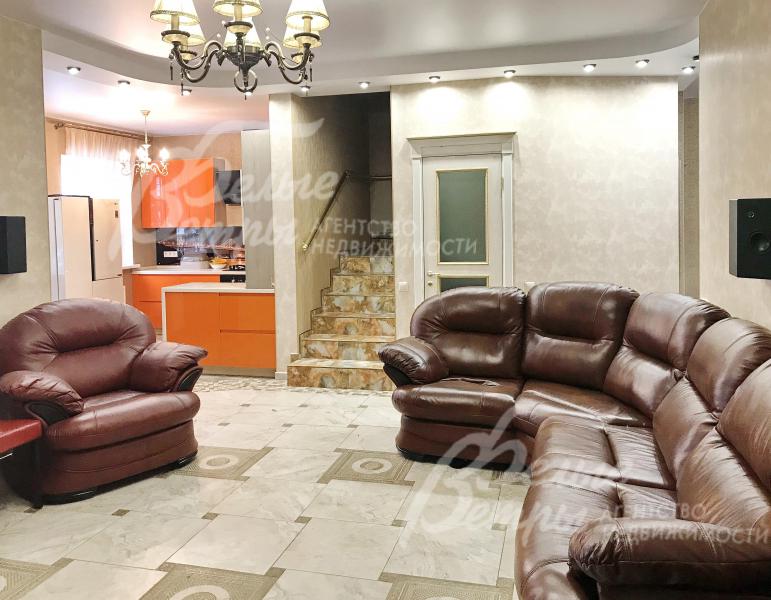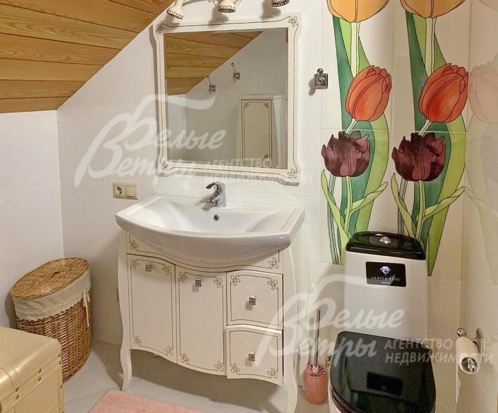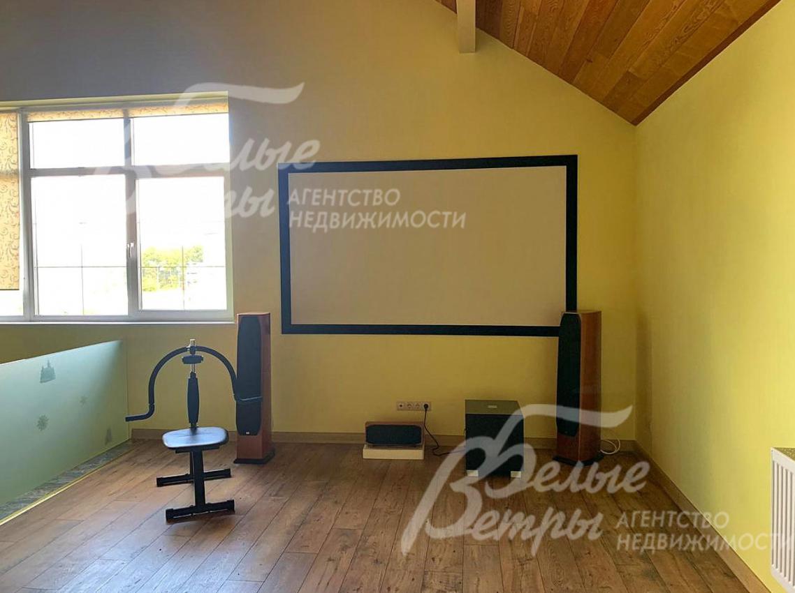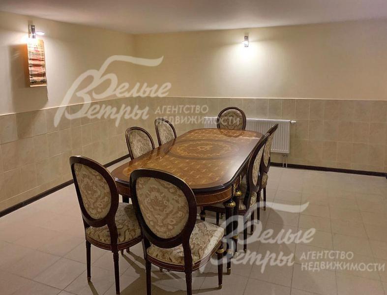 Мебель, оборудование: вся мебель есть. Кожаный диван в гостиной. Столовый гарнитур с кожаными стульями. В цоколе столовый гарнитур в классическом стиле. Спальные гарнитуры, корпусная мебель во всех спальнях. В некоторых спальнях - детская мебель. Кухонный гарнитур оранжевого цвета из МДФ со встроенной техникой: посудомоечная машина "Kuppersberg", холодильник "LG", варочная панель и духовой шкаф - "Bosch", вытяжка. Стиральная машина "Ariston", пылесос, два ТВ, экран для домашнего кинотеатра + проектор. Шторы, тюль, люстры - все есть.