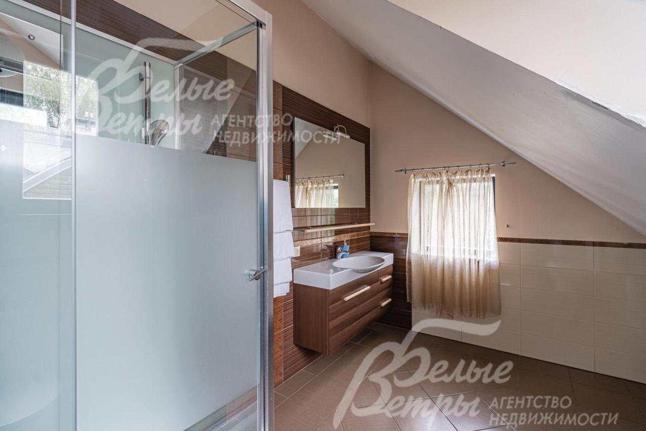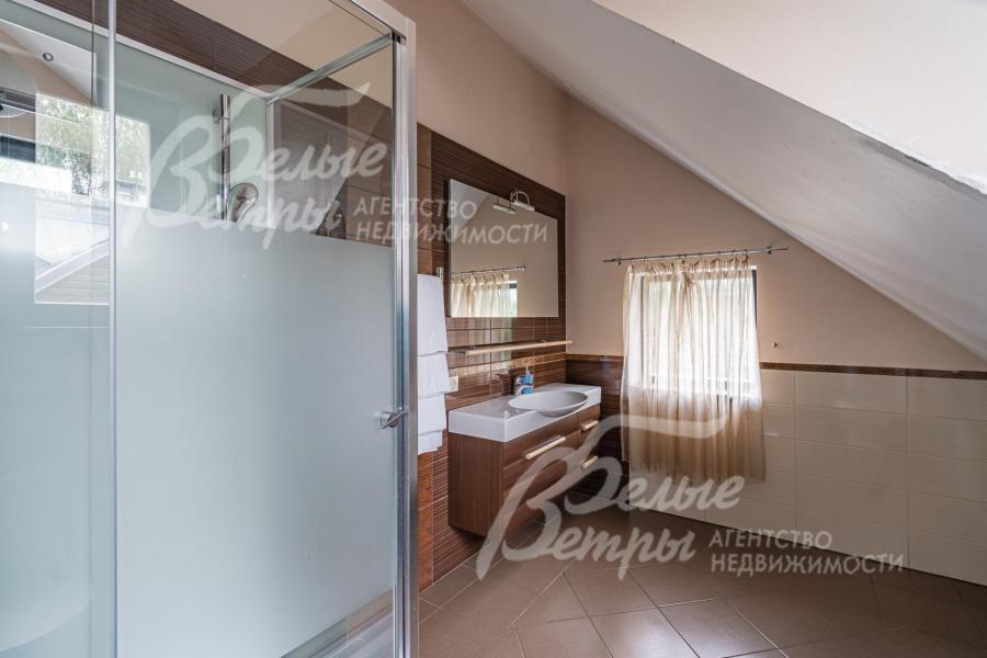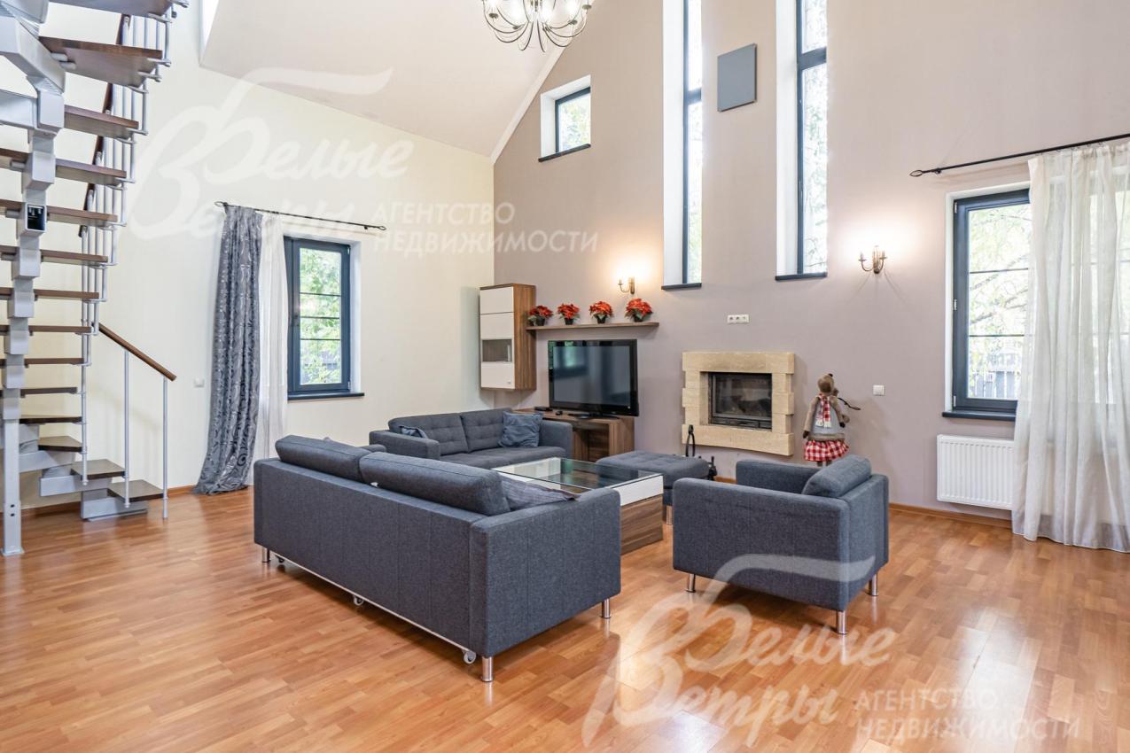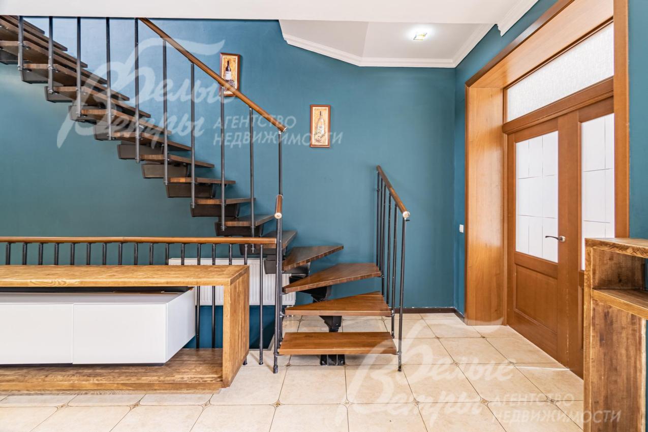 Описание внутренней отделки: отделка выполнена в стили английских интерьеров. Стены: покраска и обои. На полу плитка с водяным подогревом (Испания), в жилых зонах - ламинат. Лестница на металлическом каркасе стандартной ширины, ступени деревянные дубовые, ограждение металлическое, поручни деревянные (дуб). Потолки ГКЛ подвесные многоуровневые с различной подсветкой. В одной спальне и холле деревянная лиственница. Установлена импортная сантехника. Радиаторы стальные Kermi, э/э Legrant. Двери деревянные массив. Деревянные подоконники.
