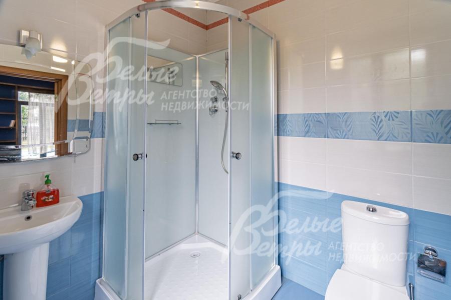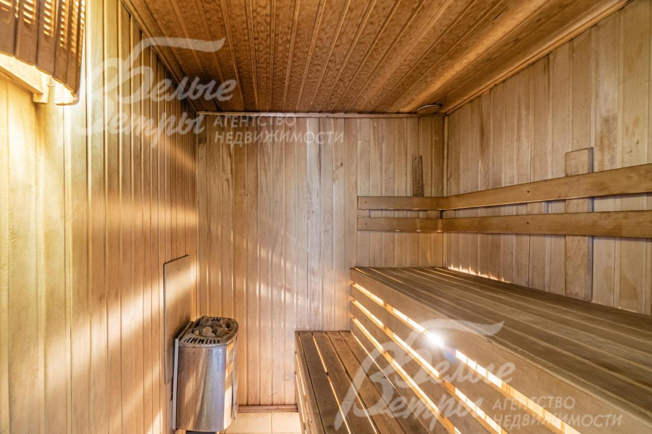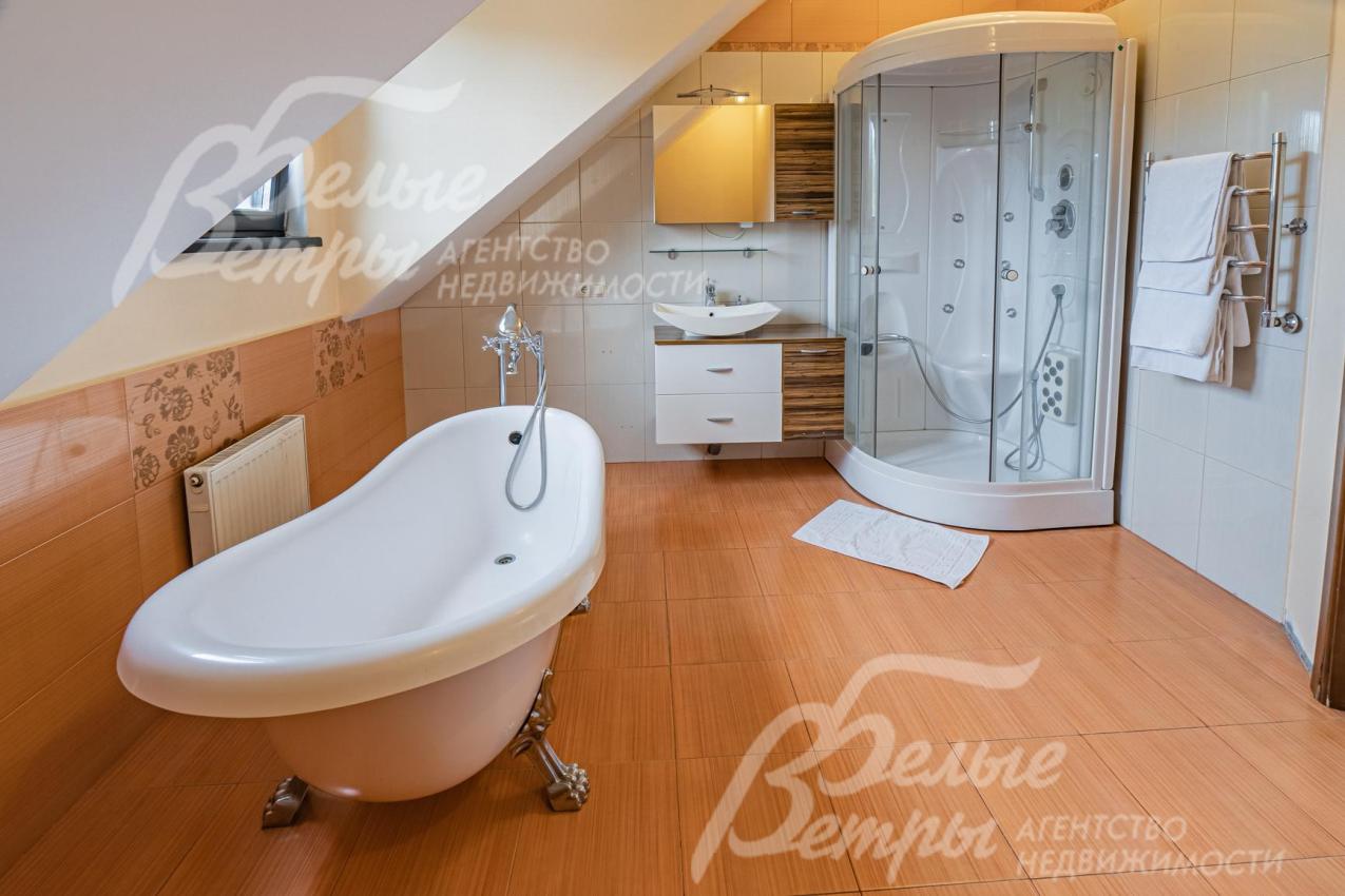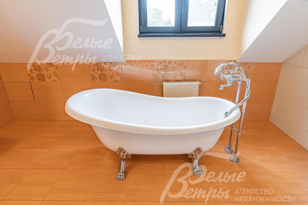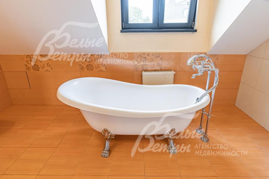 Описание внутренней отделки: отделка выполнена в стили английских интерьеров. Стены: покраска и обои. На полу плитка с водяным подогревом (Испания), в жилых зонах - ламинат. Лестница на металлическом каркасе стандартной ширины, ступени деревянные дубовые, ограждение металлическое, поручни деревянные (дуб). Потолки ГКЛ подвесные многоуровневые с различной подсветкой. В одной спальне и холле деревянная лиственница. Установлена импортная сантехника. Радиаторы стальные Kermi, э/э Legrant. Двери деревянные массив. Деревянные подоконники.