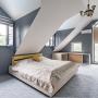 2-ой этаж: холл 17 кв.м, главная спальня 28 кв.м с санузлом 12 кв.м (душевая и ванная) и гардеробной 5 кв.м, спальня 20 кв.м, спальня 21 кв.м, общий санузел 11 кв.м (душ)