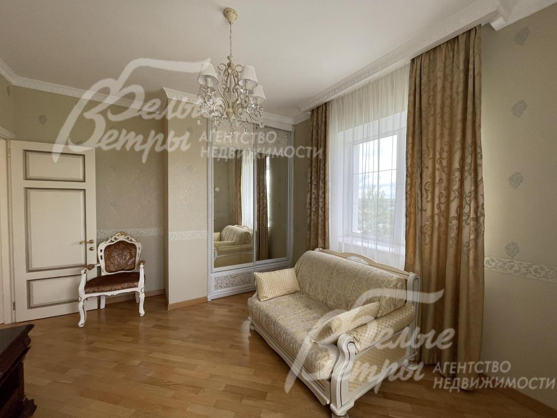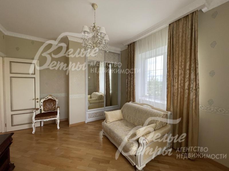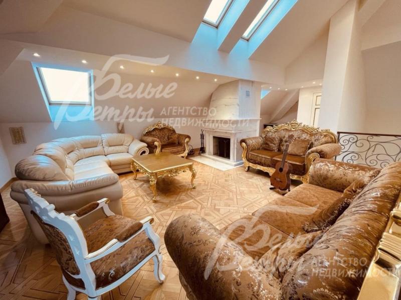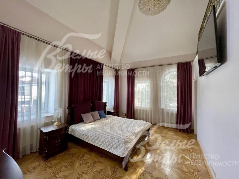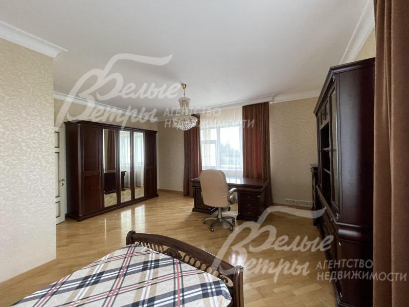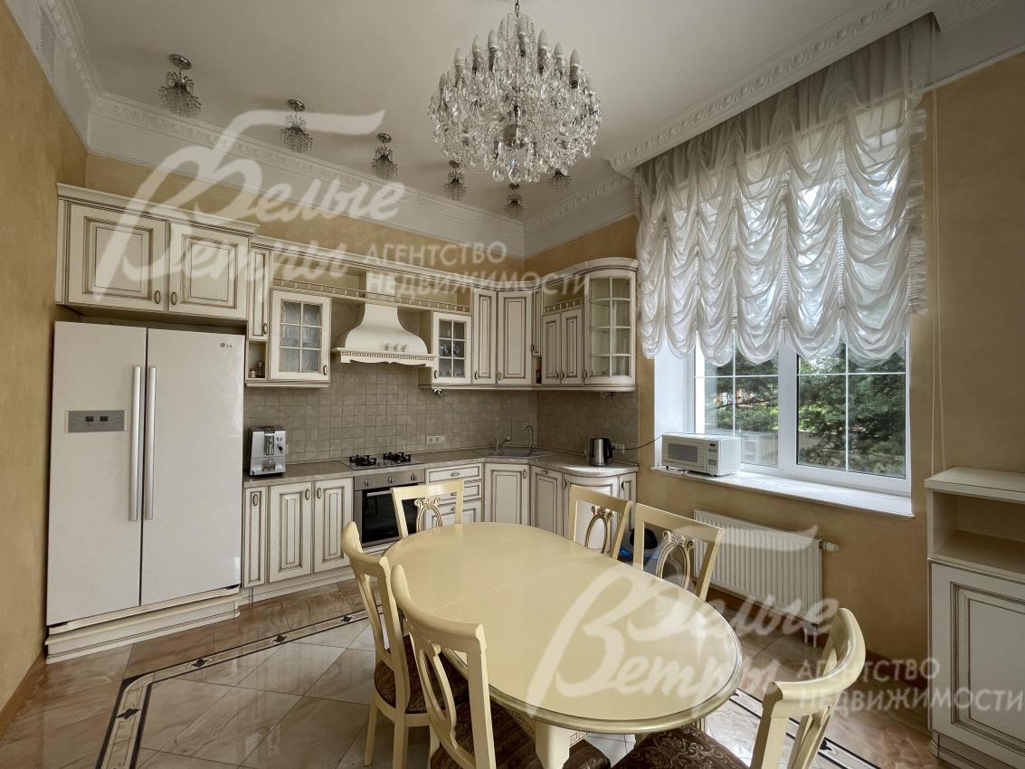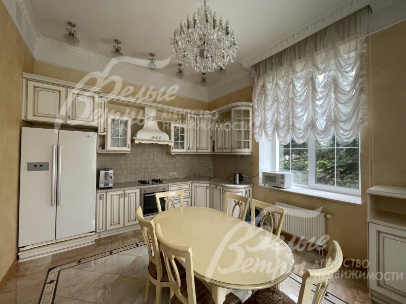 Мебель, оборудование: кухонный гарнитур в классическом стиле: филенчатые фасады из массива дерева, сливочного цвета, с резными элементами, фурнитура - фарфор с латунью, столешница из камня, имеется вся необходимая встроенная кухонная техника: распашной (двойной) холодильник LG, посудомоечная машина Bosch, кофемашина, электрический чайник, микроволновка. В комплекте к кухне - раздвижной кухонный стол с 6 стульями из той же коллекции. Стиральная машина - 2 шт. с сушкой, ТВ 3 шт. В наличии имеется вся необходимая мебель: в гостиной 2 мягких дивана, в холле расположен большой шкаф, в спальнях - двуспальные кровати, тумбы, шкафы. Имеются различного рода декоративные люстры, светильники, тюль, классические "французские" шторы.