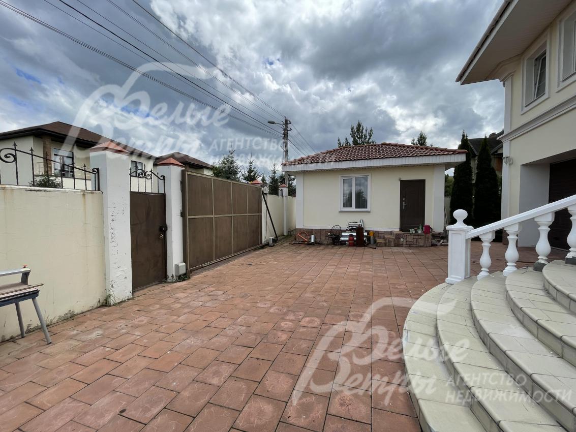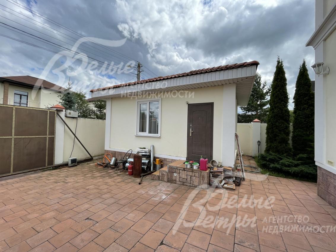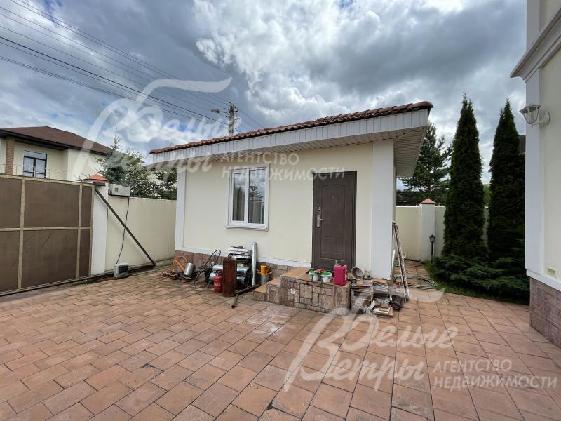 - Домик для персонала 43 кв.м в стиле основного дома, кирпичный, 1-этажный: комната-студия с полностью оборудованной кухней, санузел с душевой и стиральной машиной.
