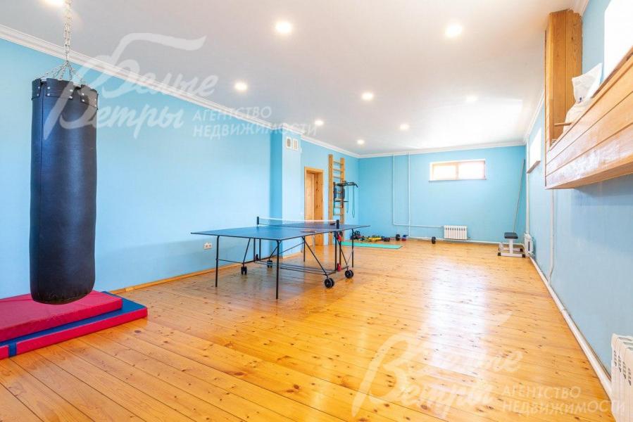 Тренажерный зал 52 кв.м в цоколе с теннисным столом, шведской стенкой и турником.