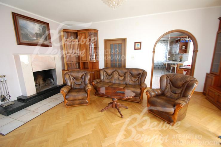 Описание внутренней отделки: стены оштукатурены и покрашены, плитка на полу в кухне и в санузле, пол паркет дубовый, лестничный марш деревянный