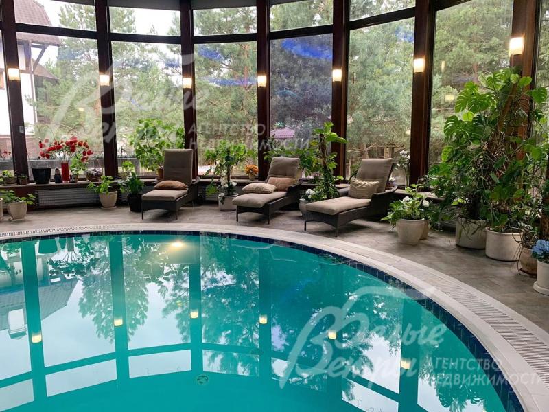 бассейн, сауна, купель, веранда, камин, холодный подвал, спортзал со множеством тренажеров, джакузи в бассейне, бильярд, стол для настольного тенниса, детская горка в бассейне, винный шкаф.