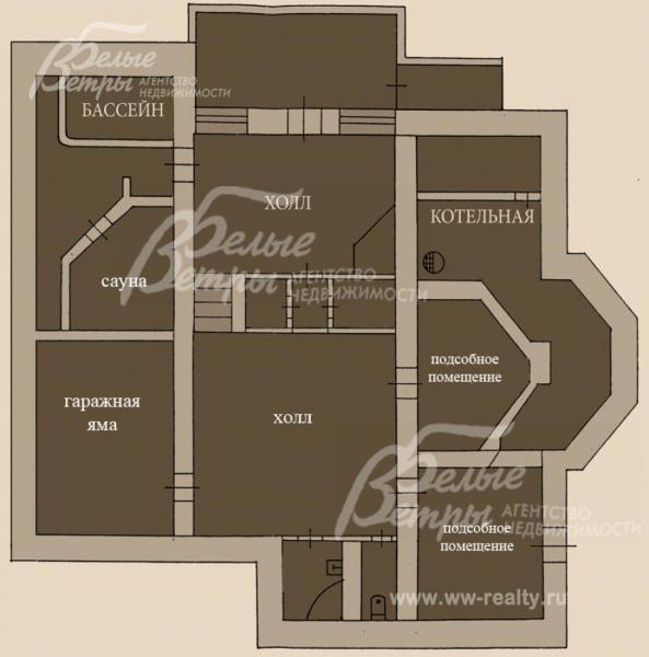 Цоколь: холл, сауна, бассейн, котельная, подсобные помещения