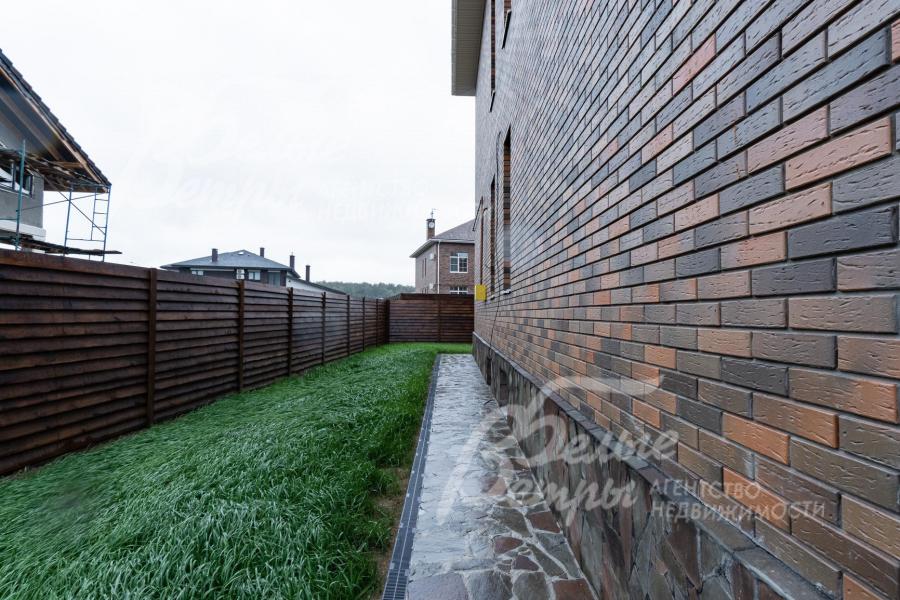 Дополнительная информация об участке: участок находится в центре поселка и огорожен глухим забором из горизонтальных досок из лиственницы "Елочка" на столбах, облицованных кирпичом. Высота забора 2 м. Автоматические откатные ворота (2 шт.). В 10 мин. пешком от каскада озер.