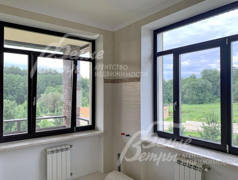 Окна: деревянные (2-х камерные, в цоколе штульповые окна. Панорамное остекление - от пола до потолка, и в ряде мест от стены до стены.)