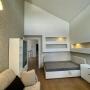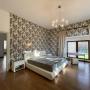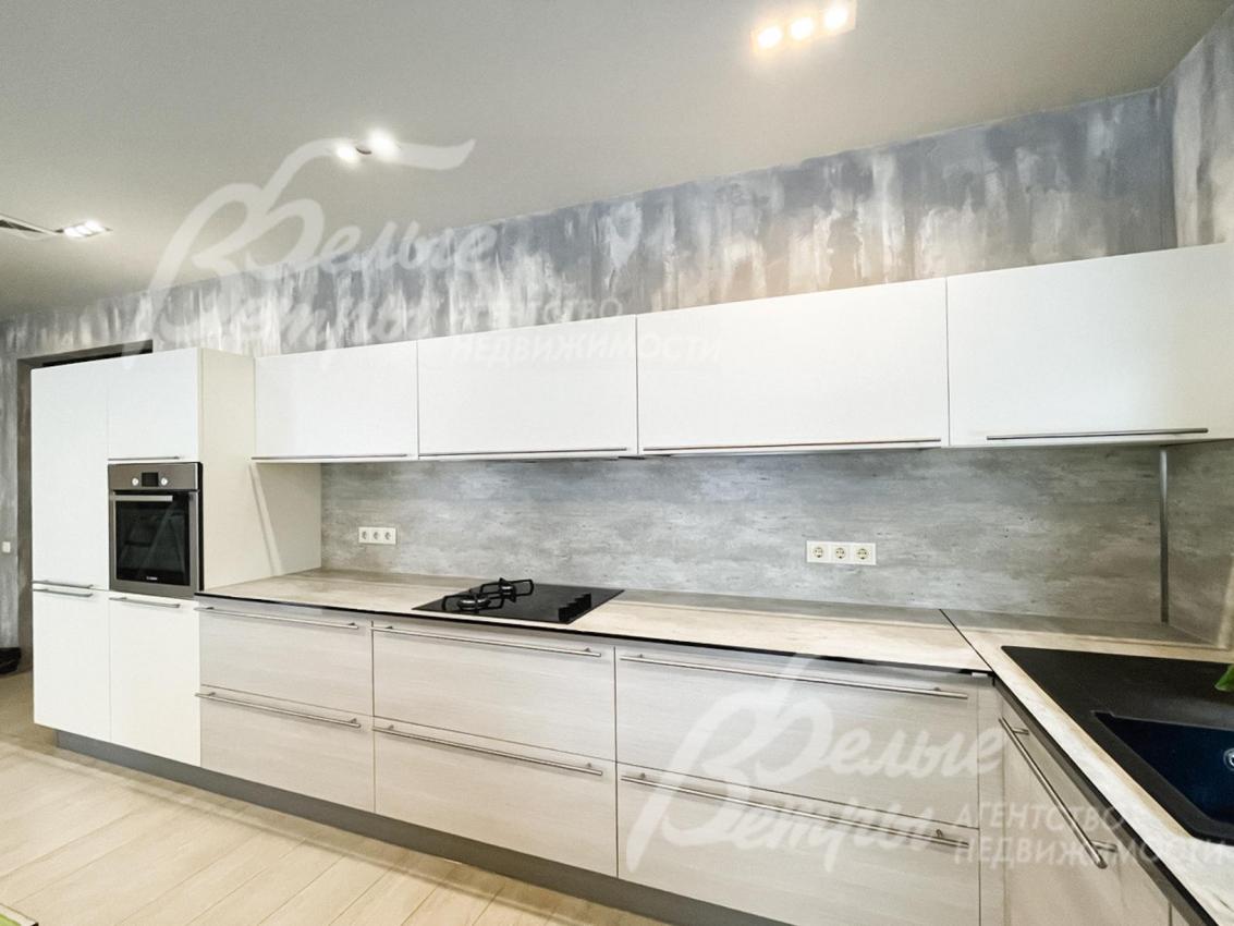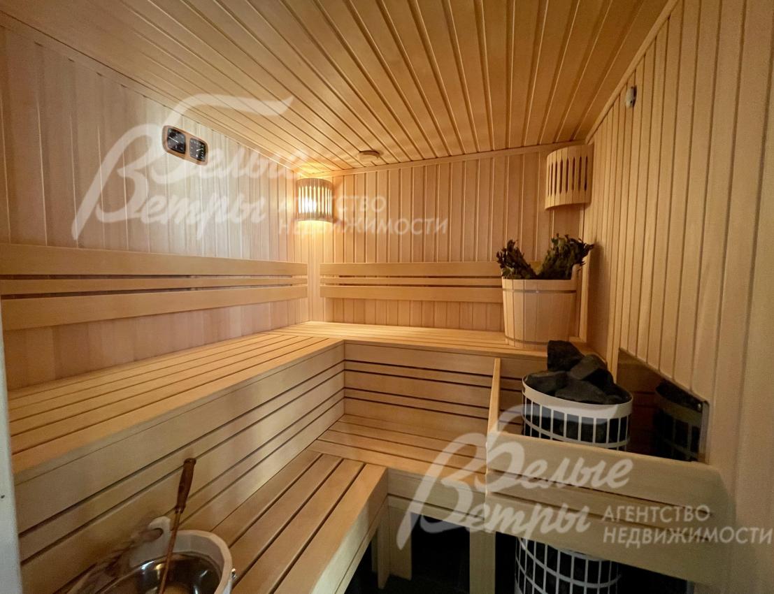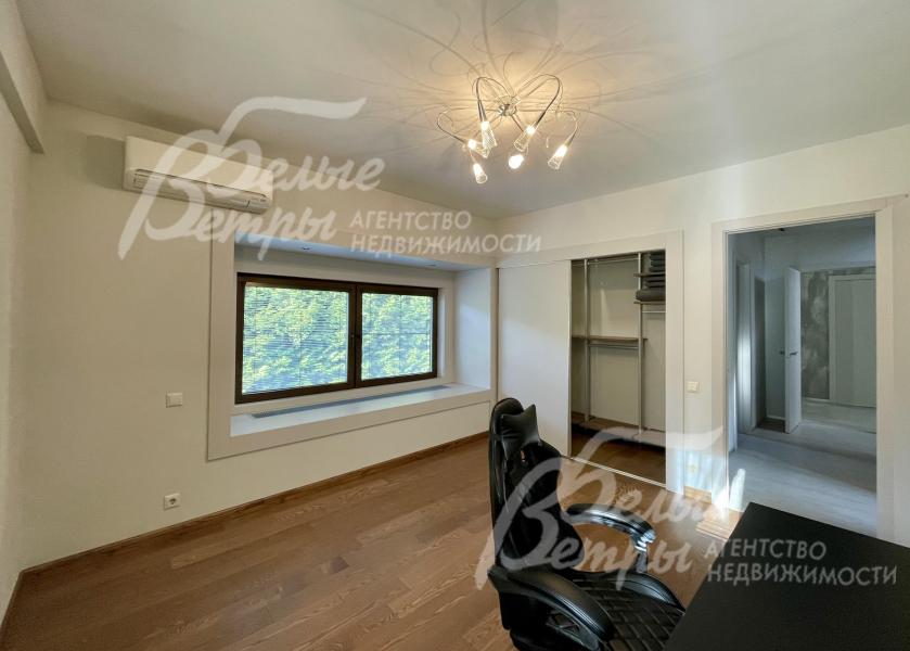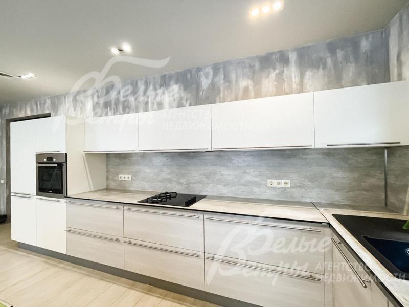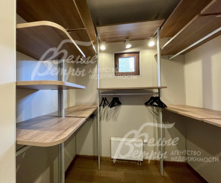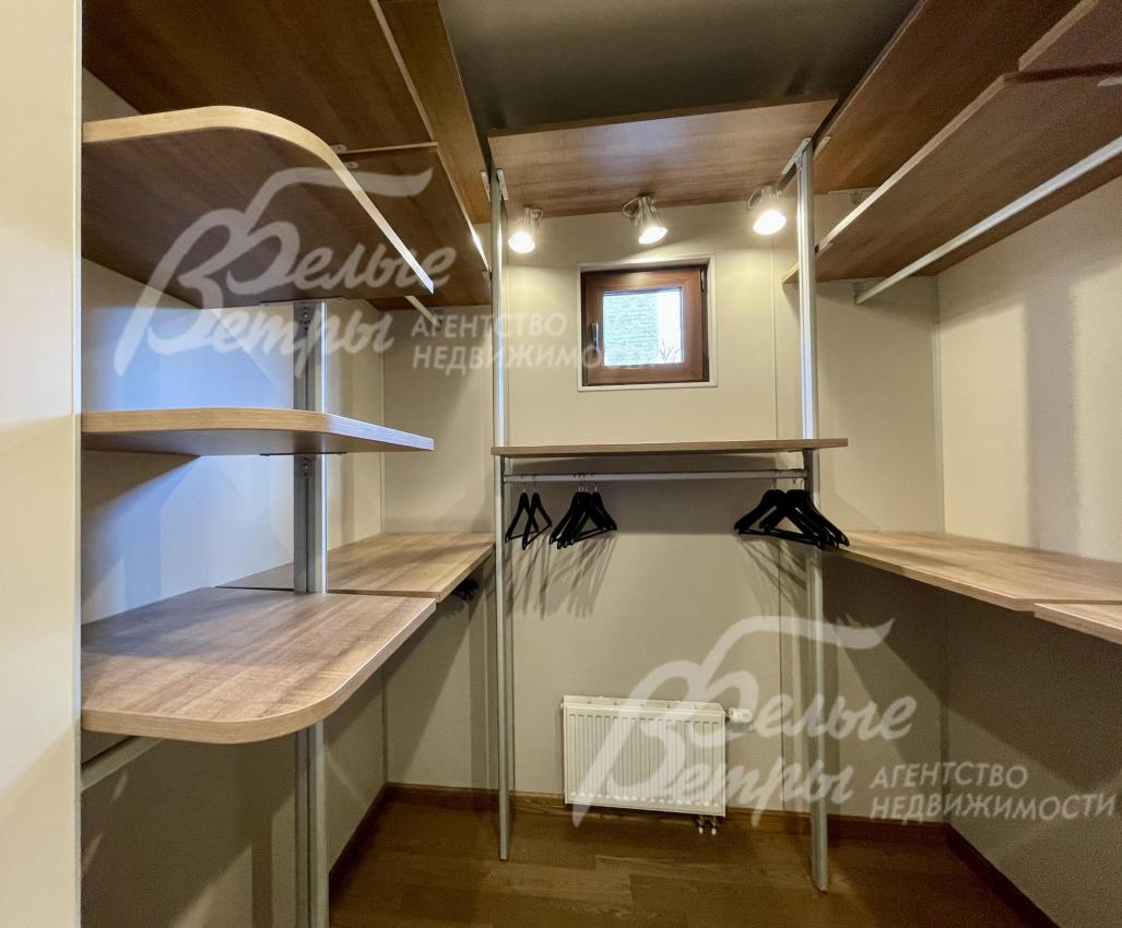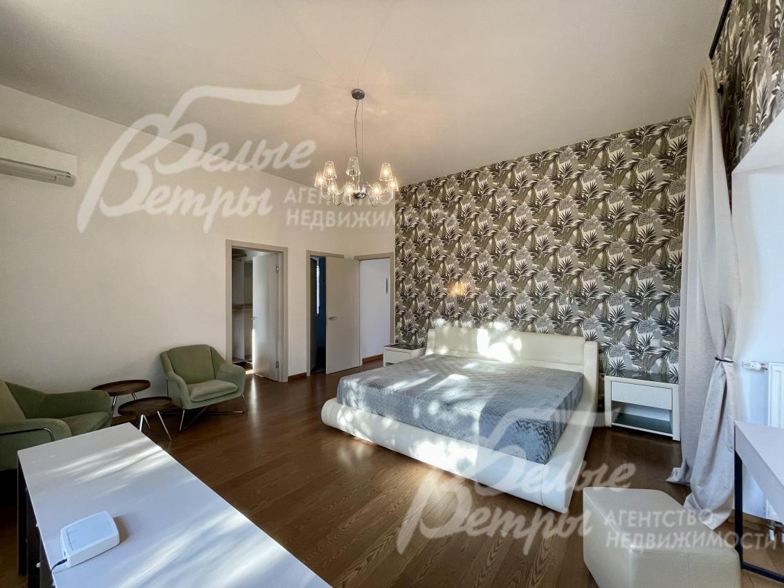 Мебель, оборудование: установлен кухоный гарнитур с островом светло-бежевого цвета со встроенной техникой: вытяжка, варочная поверхность Gorenje, духовой шкаф Bosch, посудомоечная машина Hotpoint Ariston, а также отдельно стоящий двухкамерный холодильник siemens. В зоне гостиной обеденная группа: стол из массива дерева на 6 персон со стильными стульями. В гостиной большой бежевый угловой диван и дровяной камин. В главной спальне большая кровать с прикроватными тумбочками, тумба под ТВ, в двух спальнях раскладывающиеся мягкие диваны, оборудованы гардеробные. Везде карнизы, шторы, занавески, рулонные шторы, в комнатах встроенные светильники, красивые люстры, а также бра на стенах.
