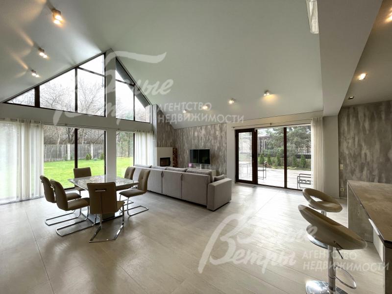 Современный дом в аренду с панорамным остеклением и мебелью в элитном коттеджном поселке Президент. В доме 4 спальни, в том числе мастер-спальня на втором этаже, гостиная с камином и большая открытая терраса. Высокие потолки и много панорамного остекления от пола до потолка.