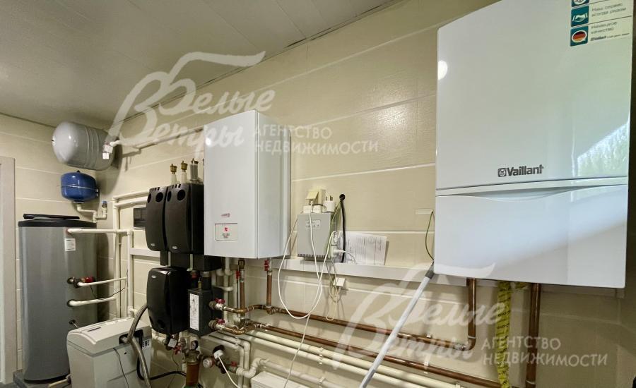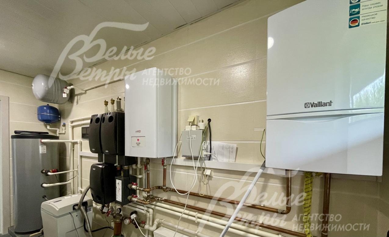 Инженерное обеспечение: установлены газовый котел Vaillant 12 кВт + электрический резервный (Protherm 9 кВт), бойлер Reflex 200 л и многофункциональный фильтр-умягчитель Aquaboss. Кондиционирование в спальнях и гостиной (Mitsubishi heavy), естественная вентиляция. Есть эфирная антенна и спутниковая ТВ-тарелка. Сигнализация.