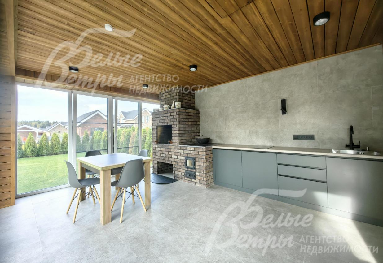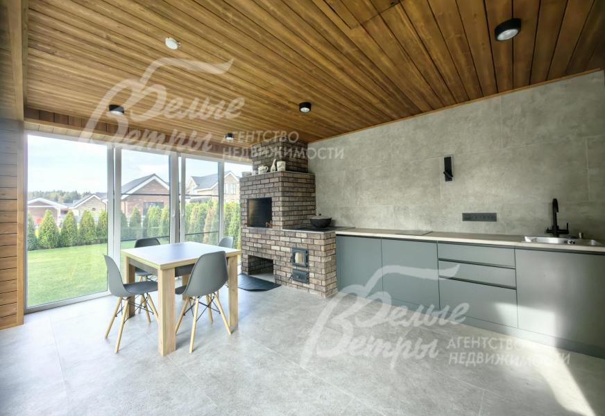 Дополнительные строения: - Вспомогательное строение в стиле дома 26.5 кв.м - баня с комнатой отдыха и беседкой-барбекю, отапливаемая, с окнами от пола на две стороны, с кухонным гарнитуром и каменной печью с барбекю, с электро сауной и санузлом (с душевой);