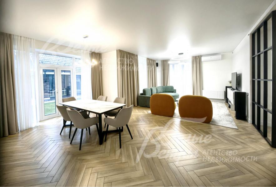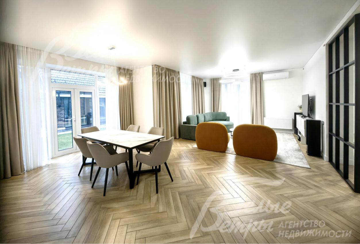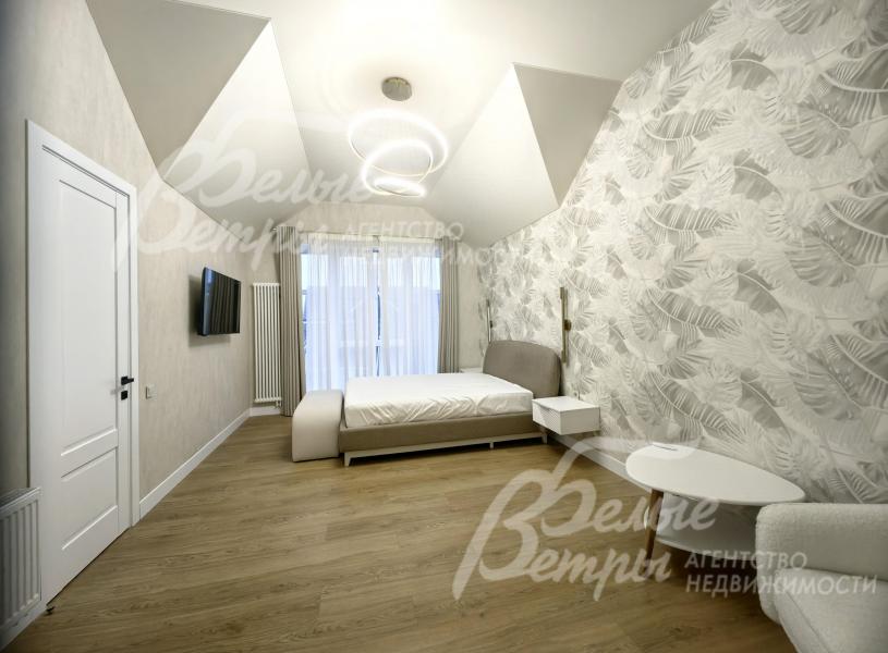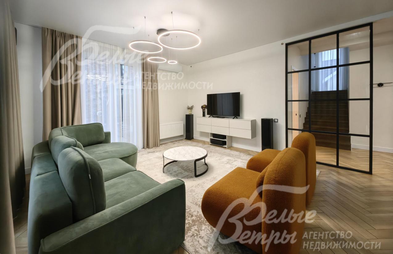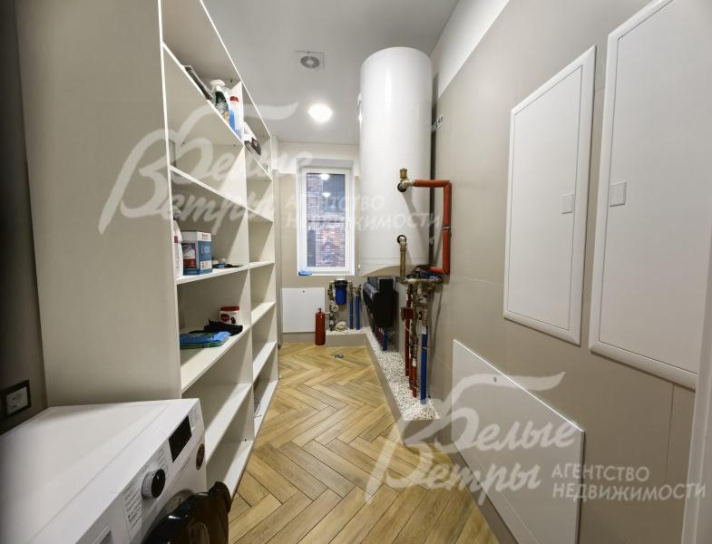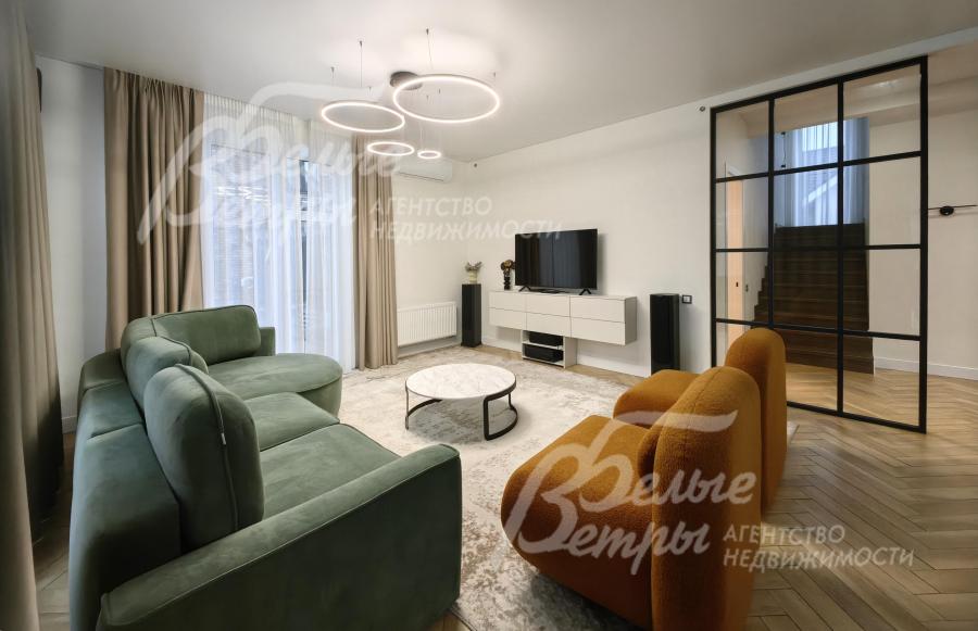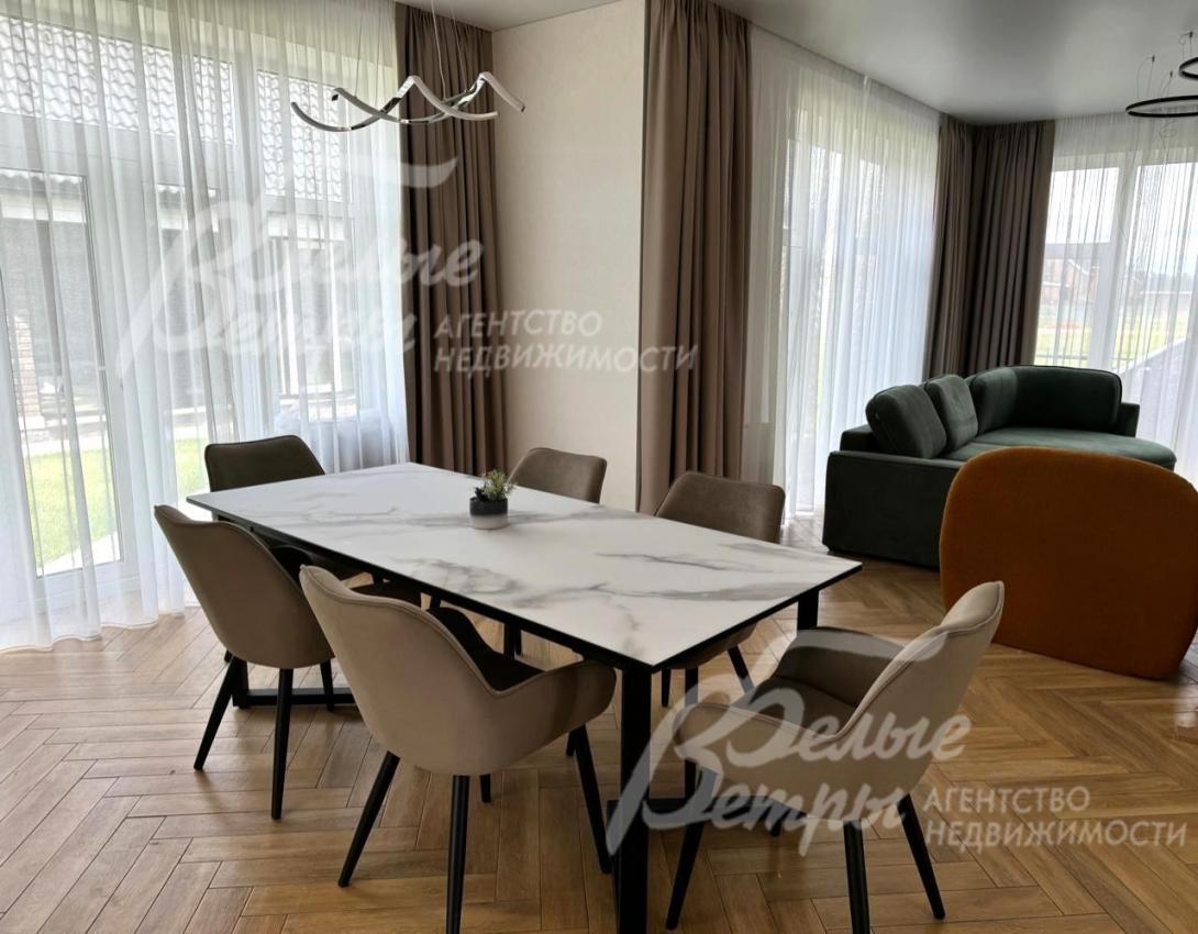 Мебель, оборудование: меблировка выдержана в единой стилистике: мягкая мебель в гостиной (диван и кресла), столовый гарнитур на 6 персон (стол и стулья), в одном стиле со стульями в столовой. В спальнях - большие и высокие двуспальные кровати с мягким изголовьем, гардеробные полностью оборудованы. Стильная кухня с большими островом и полу барным столом со стульями, с фасадами серого цвета, без ручек (современные удобные углубления для открывания) дверей шкафчиков, столешница и фартук черного цвета из искусственного камня. Встроенная техника BOSCH (духовой шкаф, СВЧ, варочная электрическая панель, посудомоечная машина). Стиральная машина - Beko; встроенный холодильник. Во всех помещениях шторы, тюль, люстры и различные светильники.