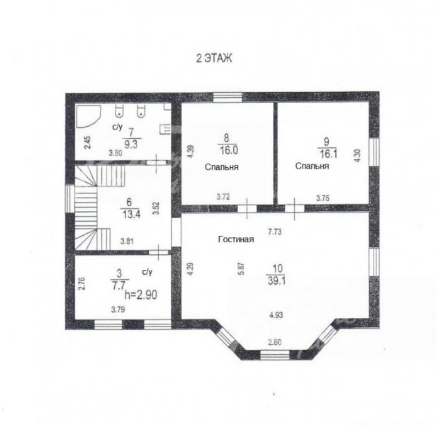 2-ой этаж: 2 спальни по 16 кв.м, гостиная 39 кв.м, с/узел с душевой кабиной, с/узел