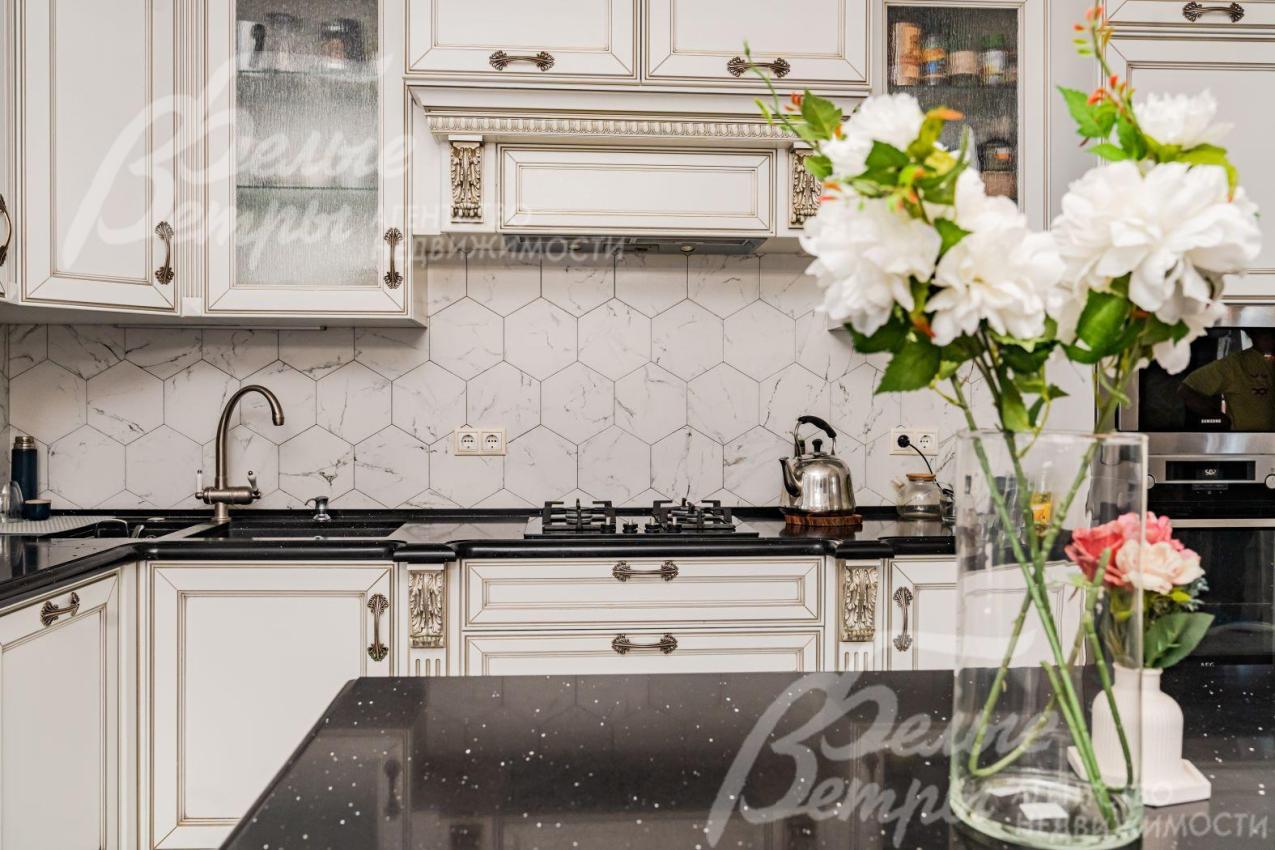Кухня с островом, есть выход на террасу и участок