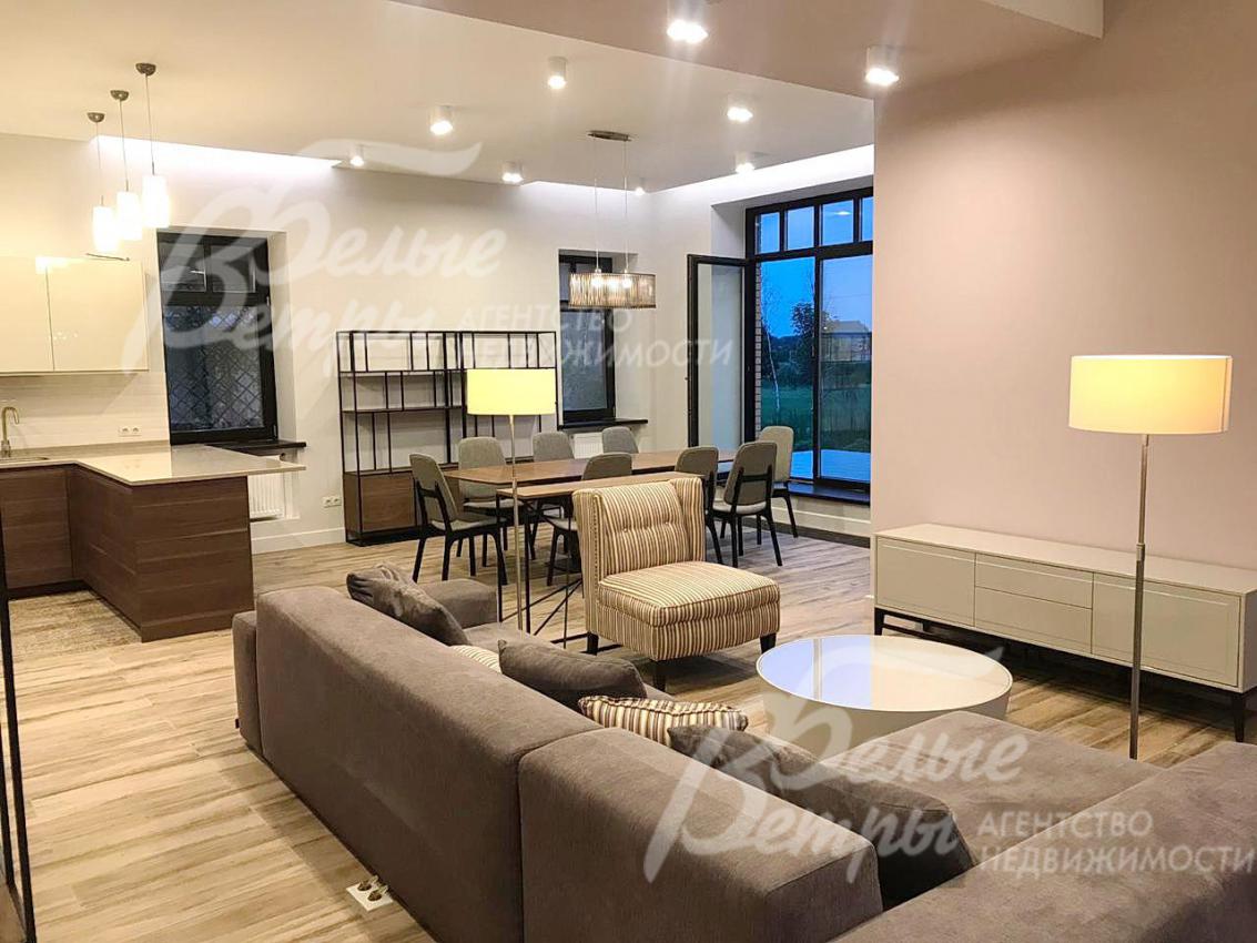 Мебель, оборудование: в доме есть вся необходимая мебель. В гостиной большой угловой диван, кресло, дизайнерский журнальный столик. В зоне столовой обеденная группа на 8 персон, оригинальные столики и этажерки. Спальни оборудованы гарнитурами с просторными кроватями, тумбами, комодами, туалетными столиками и шкафными группами. Гардеробные комнаты оборудованы системами для хранения вещей. Качественный стильный кухонный гарнитур, есть вся необходимая техника: холодильник, микроволновая печь, варочная панель и духовой шкаф, посудомоечная машина. А также есть стиральная машина, телевизоры. На окнах роликовые шторы, жалюзи. Дом украшен оригинальными светильниками и предметами интерьера.