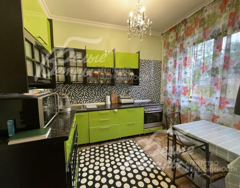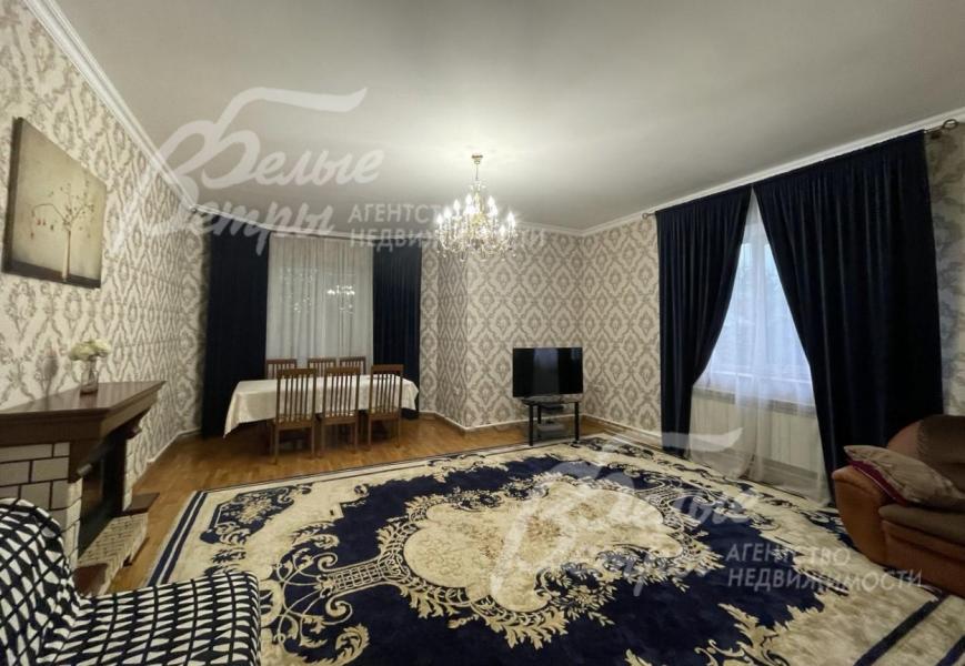 Мебель, оборудование: Дом полностью укомплектован мебелью. В гостиной-столовой два дивана, обеденный стол на 8 персон. В спальнях - кровати с матрацами, шкафы, комод. Кухня с лакированными фасадами цвета лайма, с нотками японского стиля, с черной (под мрамор) столешницей и с рабочим фартуком из мозаики, встроенная электрическая варочная панель AEG, духовой шкаф AEG, микроволновка LG, большой холодильник Whirpool. Обеденный стол со стульями. Стиральная машина LG на 6.5 кг загрузки, пылесос, ТВ. Во всех помещениях люстры, тюль и шторы, картины на стенах, на полу хорошие ковры.