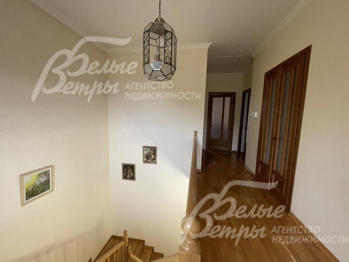 Описание внутренней отделки: в холе стены окрашены, в жилых комнатах - обои. На полу дубовый паркет, в кухне, коридоре и санузлах - плитка с подогревом. В санузлах на стенах и полу коллекционная плитка. Лестница отделана дубом.