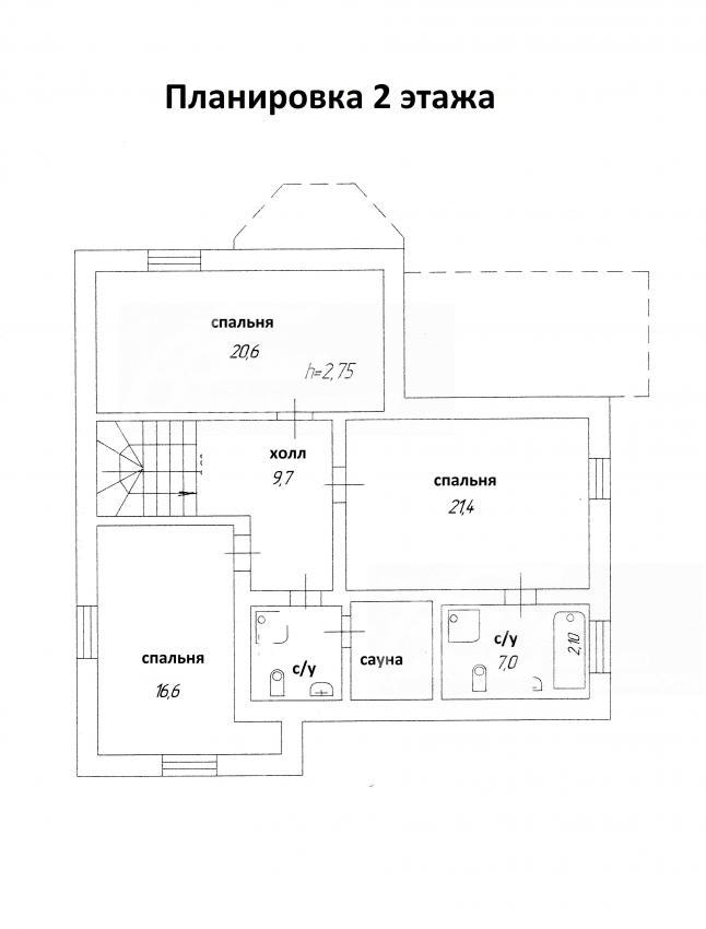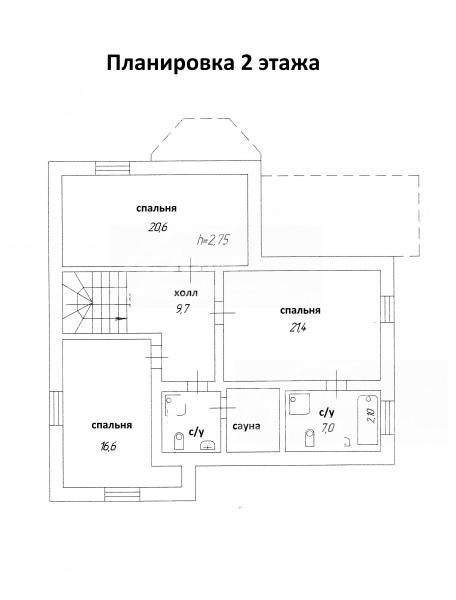 2-ой этаж: холл 30,6 кв.м, спальня с с/узлом, спальня 19 кв.м, с/узел 4 кв.м, спальня 19 кв.м с балконом 3 кв.м