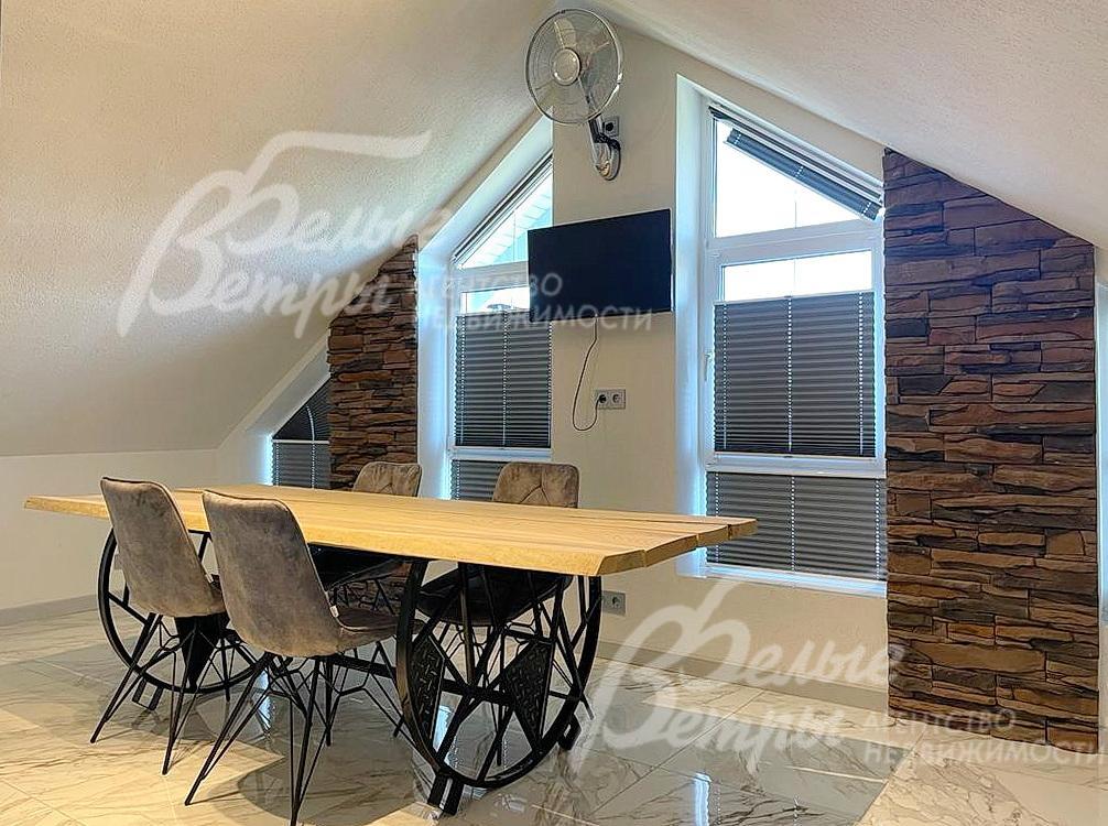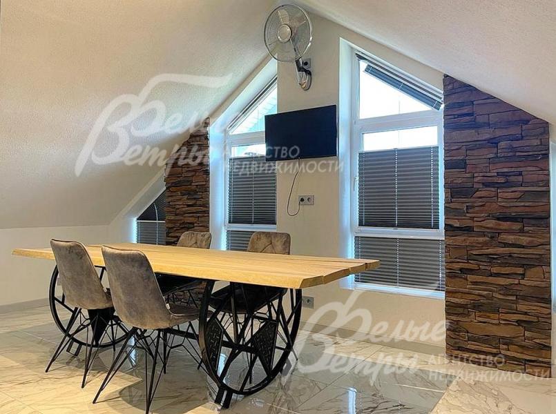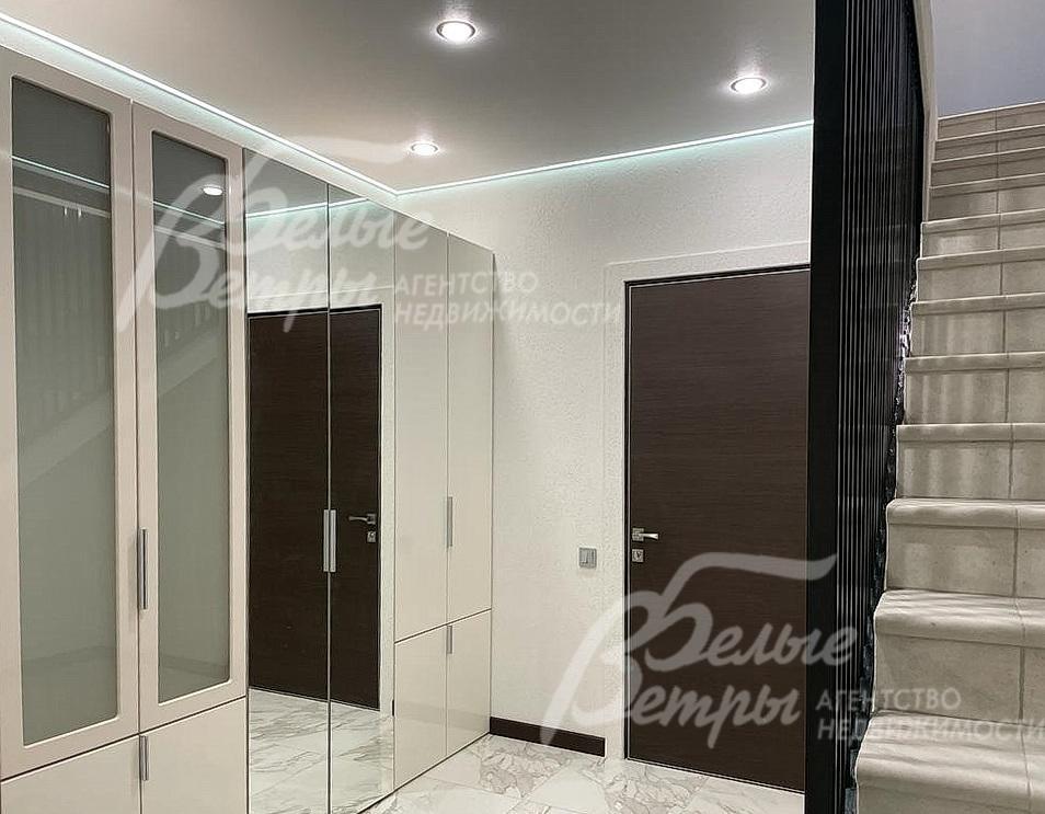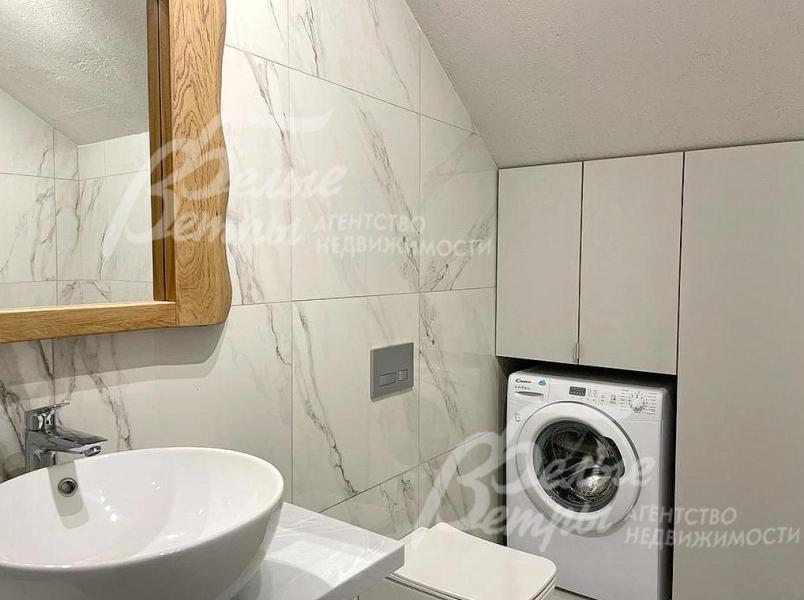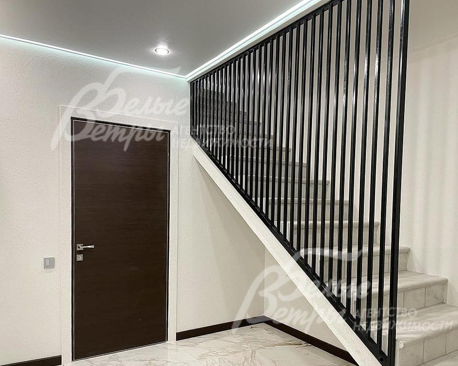 На этажах – холлы с изящной лестницей с коваными перилами. Отделка дома выполнена в 2021 г.: стены окрашены, на полу – керамогранит с водяным подогревом, потолки из гипсокартона со встроенными светильниками, установлены ламинированные двери. В санузлах – керамическая плитка, натяжные потолки и новая сантехника. Отопление обеспечивается тепловым насосом, резервное — газгольдер 4,5 куб. м для отопления и ГВС. Установлена система водоподготовки и умягчения воды.