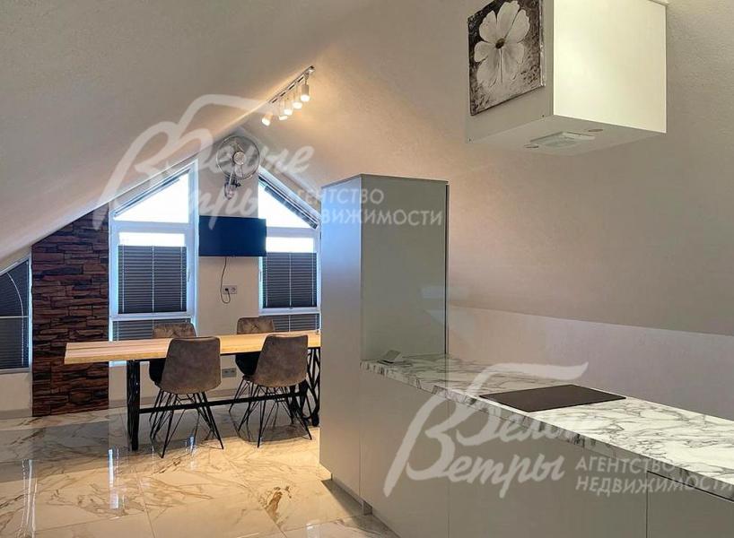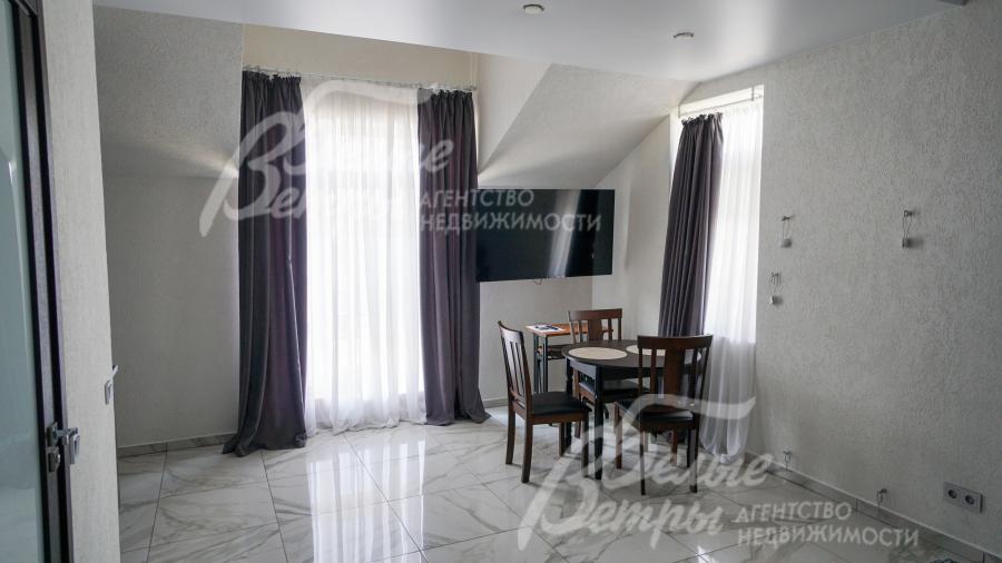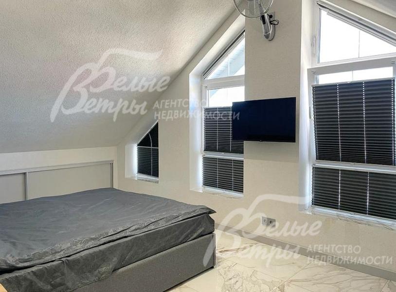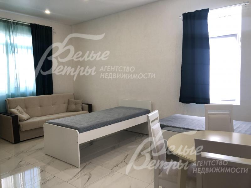 Дом построен из газобетона с утеплением 300 мм, фундамент – утеплённая шведская плита, кровля – металлочерепица, установлены двухкамерные ПВХ-окна с атермальным покрытием. На двух этажах размещены 8 студий по 32 кв. м, на мансардном этаже – просторная студия 120 кв. м. В каждой студии – современный интерьер с удобной мебелью: спальное место (кровать или диван), рабочее место (стол со стульями), оборудованная мини-кухня (холодильник, стиральная машина, электроплита, СВЧ-печь, чайник), установлен телевизор со спутниковым ТВ, есть шторы и светильники.