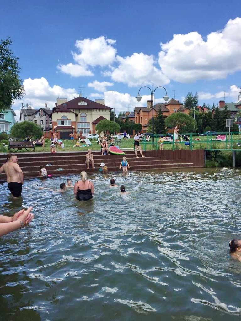 В эти солнечные летние дни счастливые жители и гости поселка Потапово проводят время на обустроенном пляже у берега большого чистого озера: