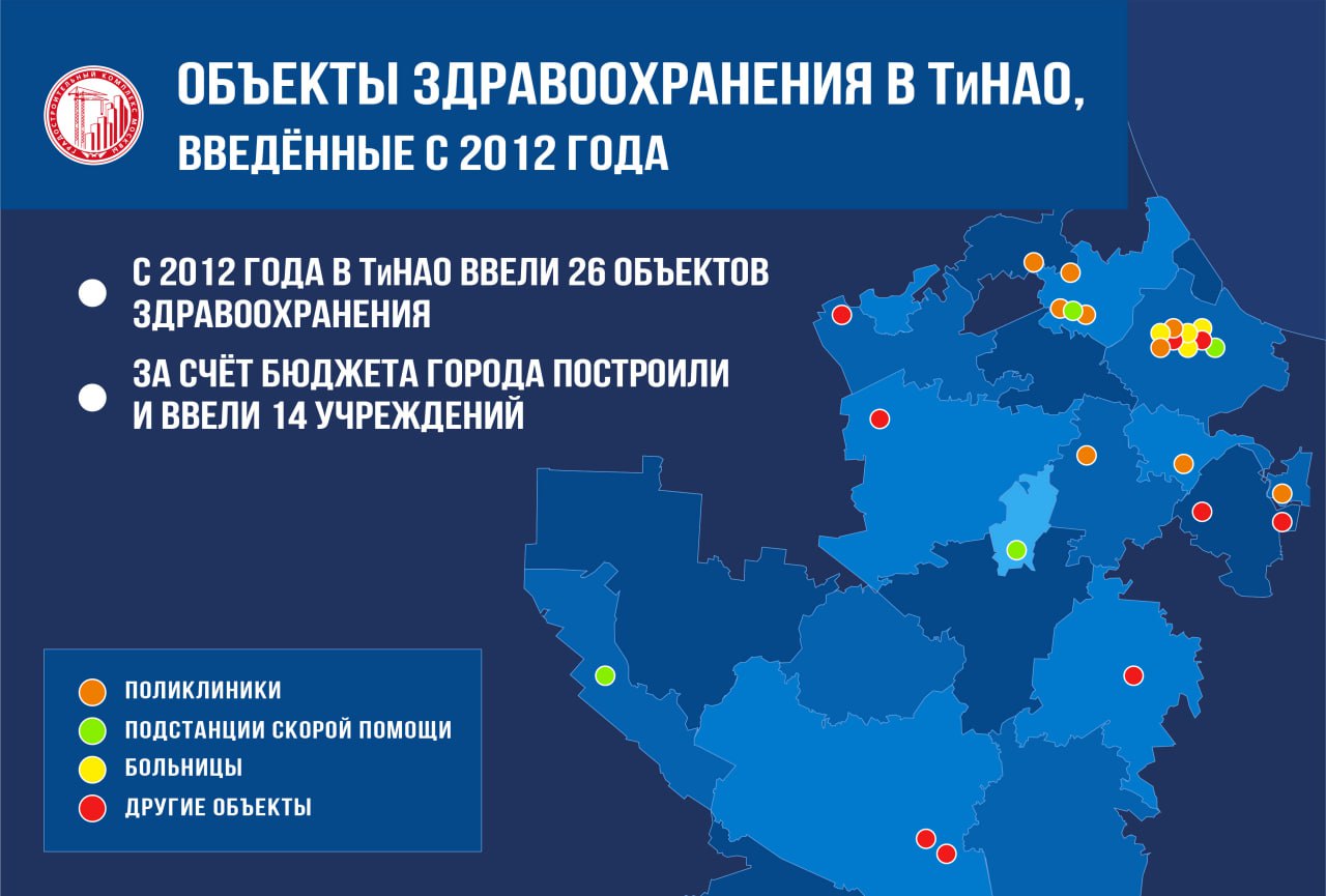 А всего с 2012 года в новых округах построили и ввели в эксплуатацию 24 объекта здравоохранения, в том числе 16 поликлиник.
