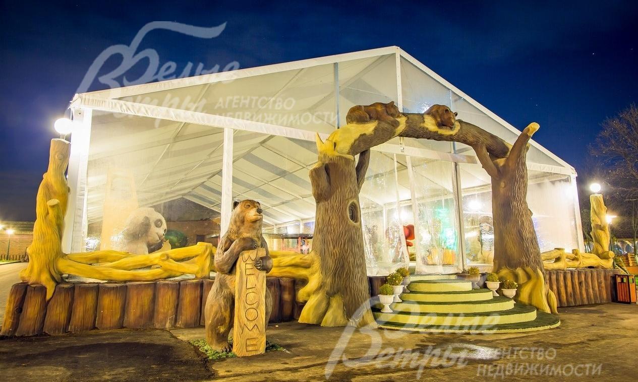 Зона отдыха с рестораном, сауной, беседками-барбекю, детской площадкой, веревочным парком