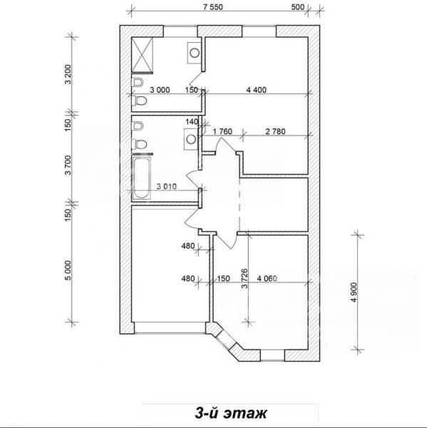 3-ий этаж: хозяйственная спальня с санузлом, две детские спальни, санузел
